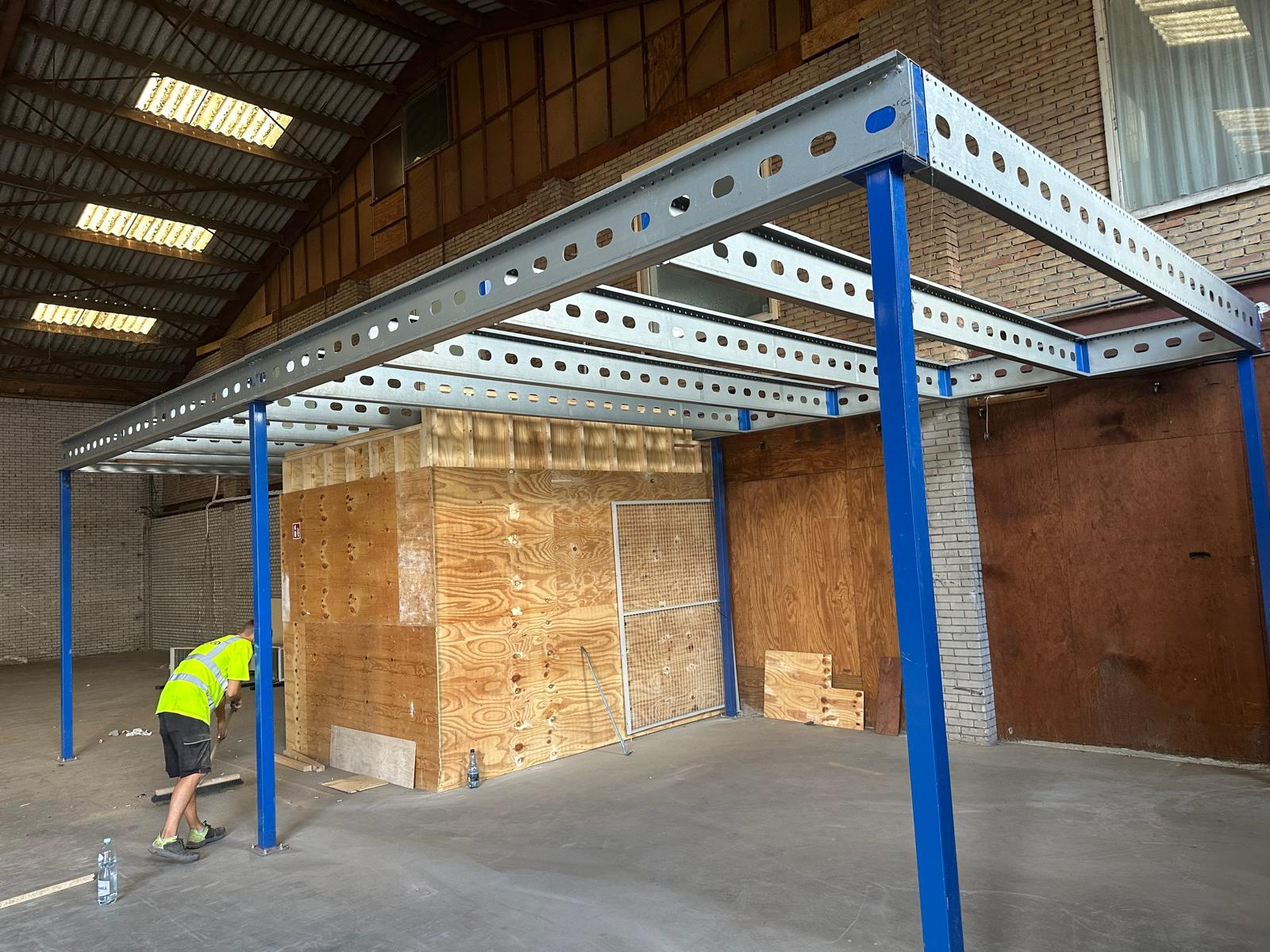 Antresola magazynowa 475×910 cm przejazd 280 cm podwójna podłoga