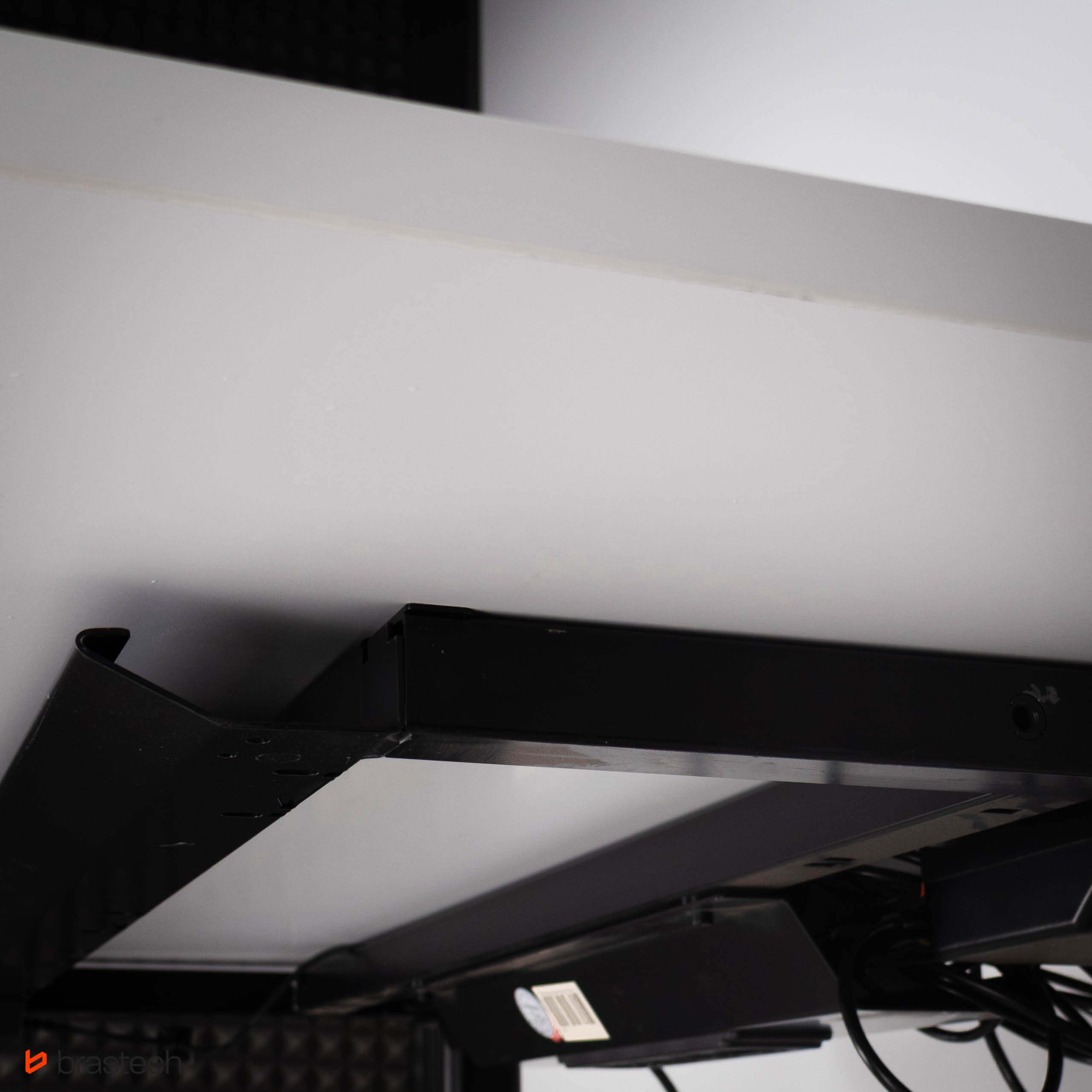 Biurko Aspa zostało wyposażone w szynę na kable, która skutecznie pomaga utrzymać porządek na powierzchni roboczej, eliminując widoczne i nieestetyczne przewody. Zintegrowany system zarządzania okablowaniem zapewnia pełną kontrolę nad podłączonymi urządzeniami, dzięki czemu stanowisko pracy pozostaje czyste i estetyczne.