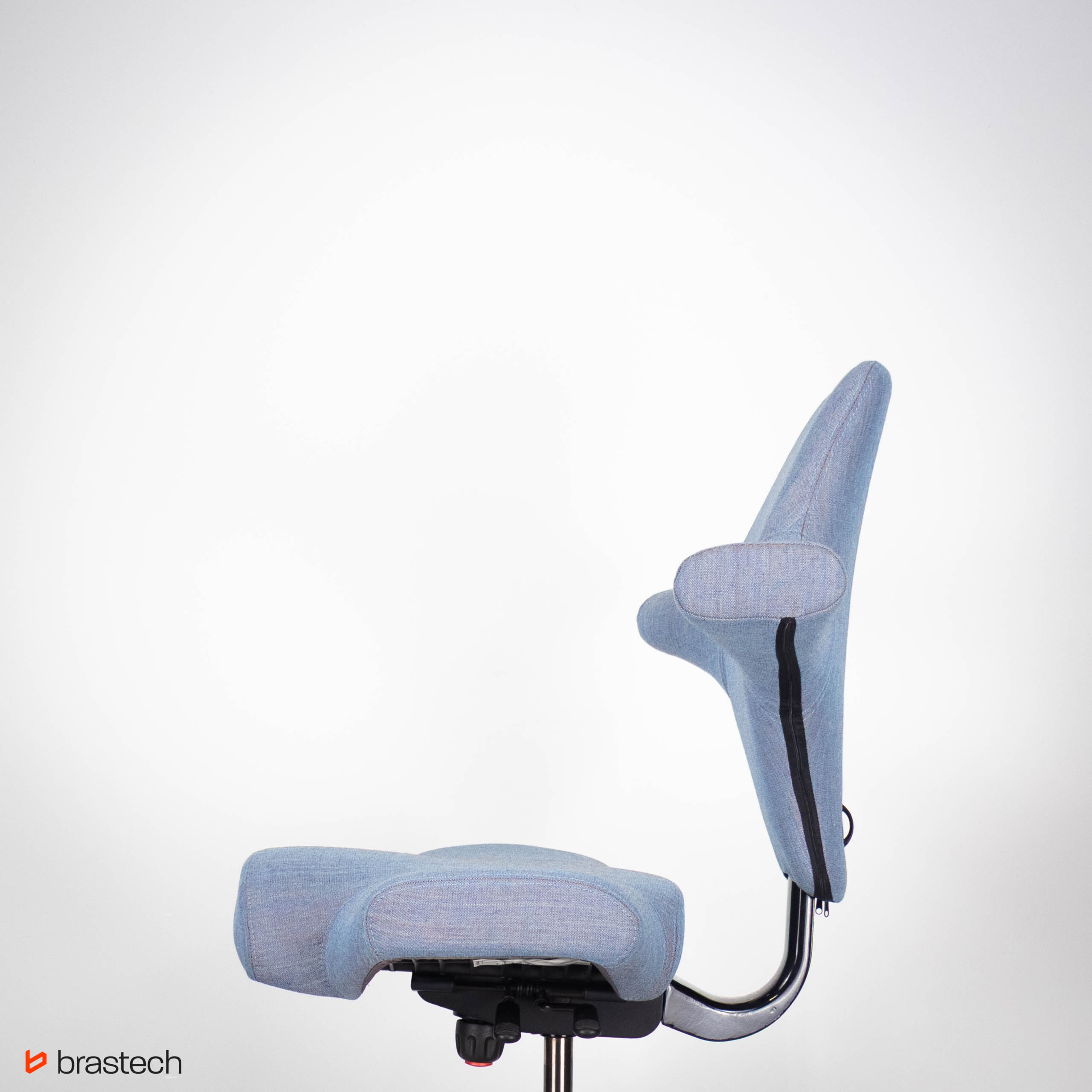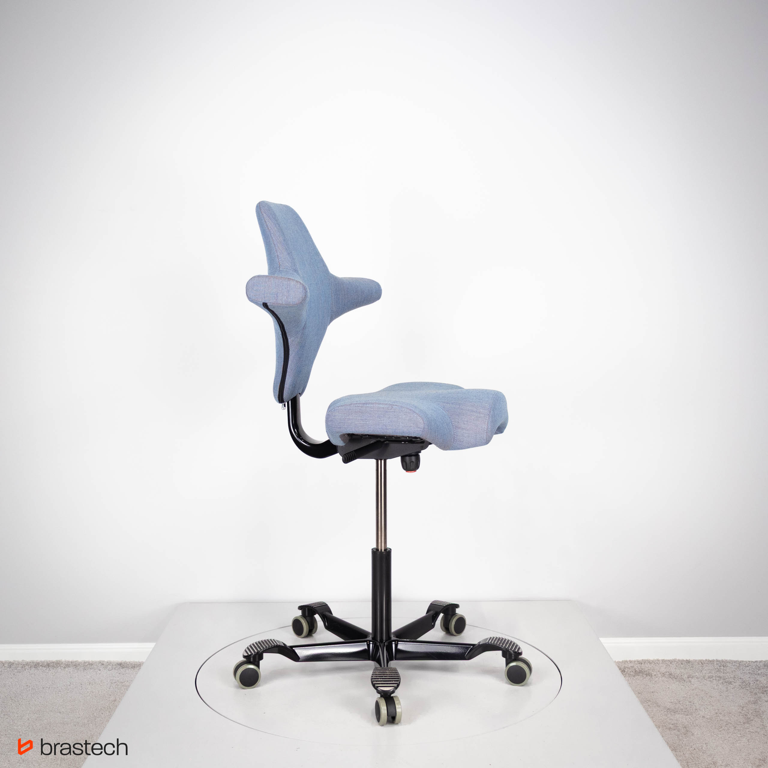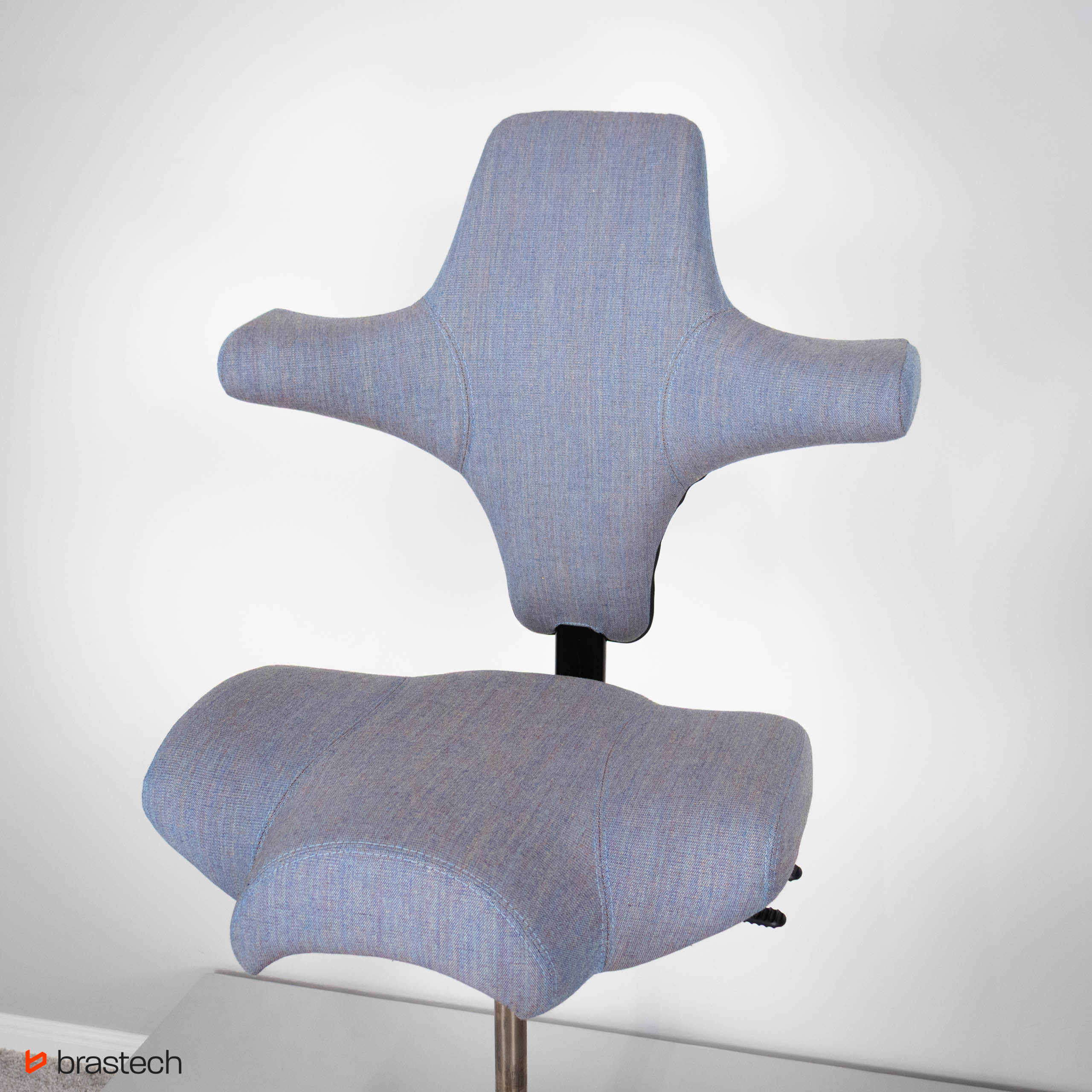 • Unikalne siedzisko w kształcie siodła – umożliwia siedzenie przodem, bokiem lub tyłem, zapewniając pełną swobodę ruchów.