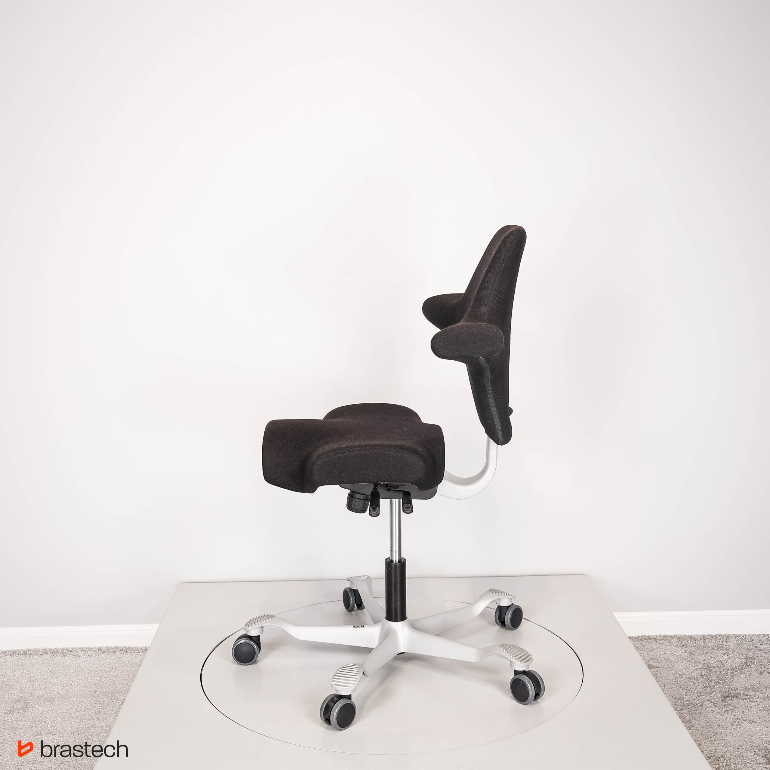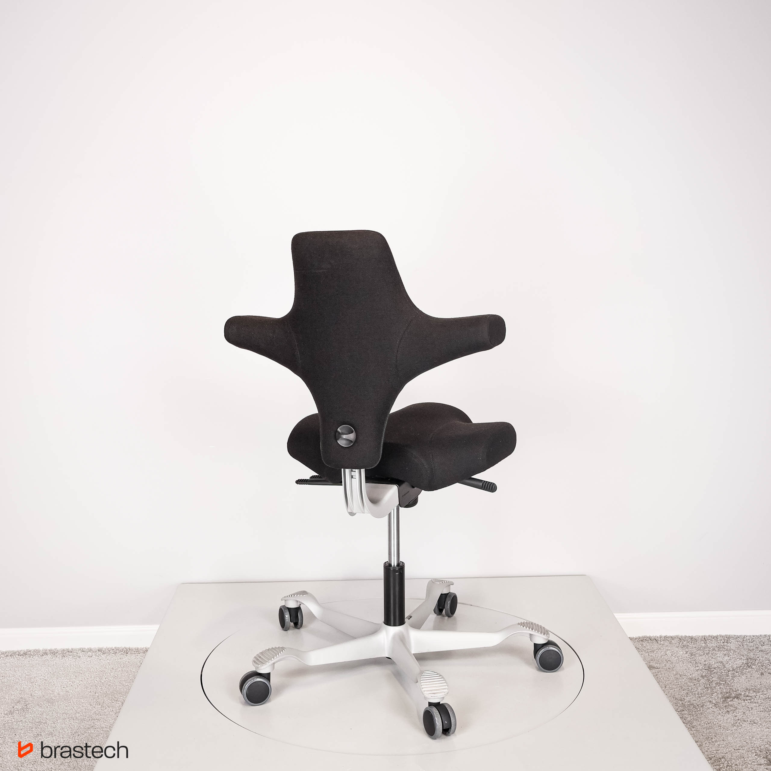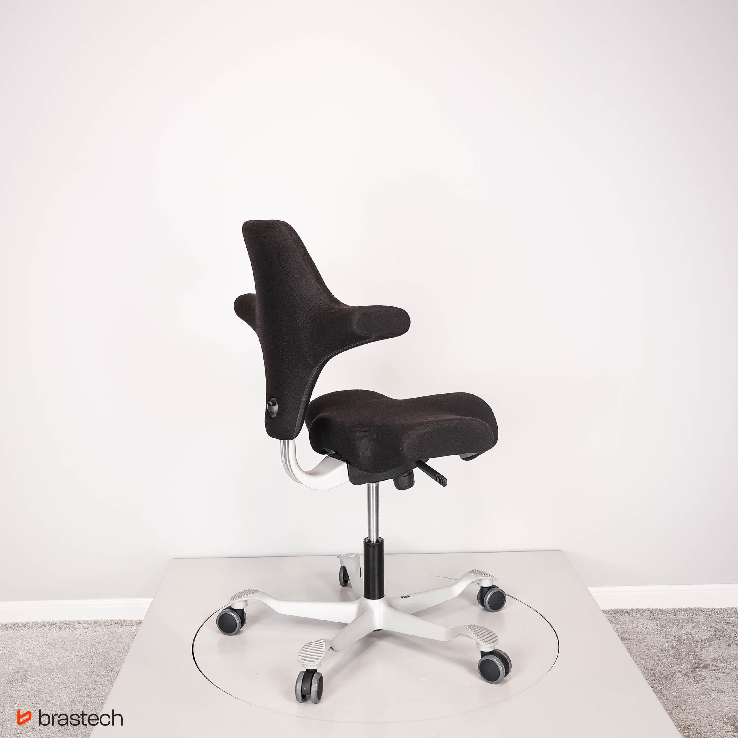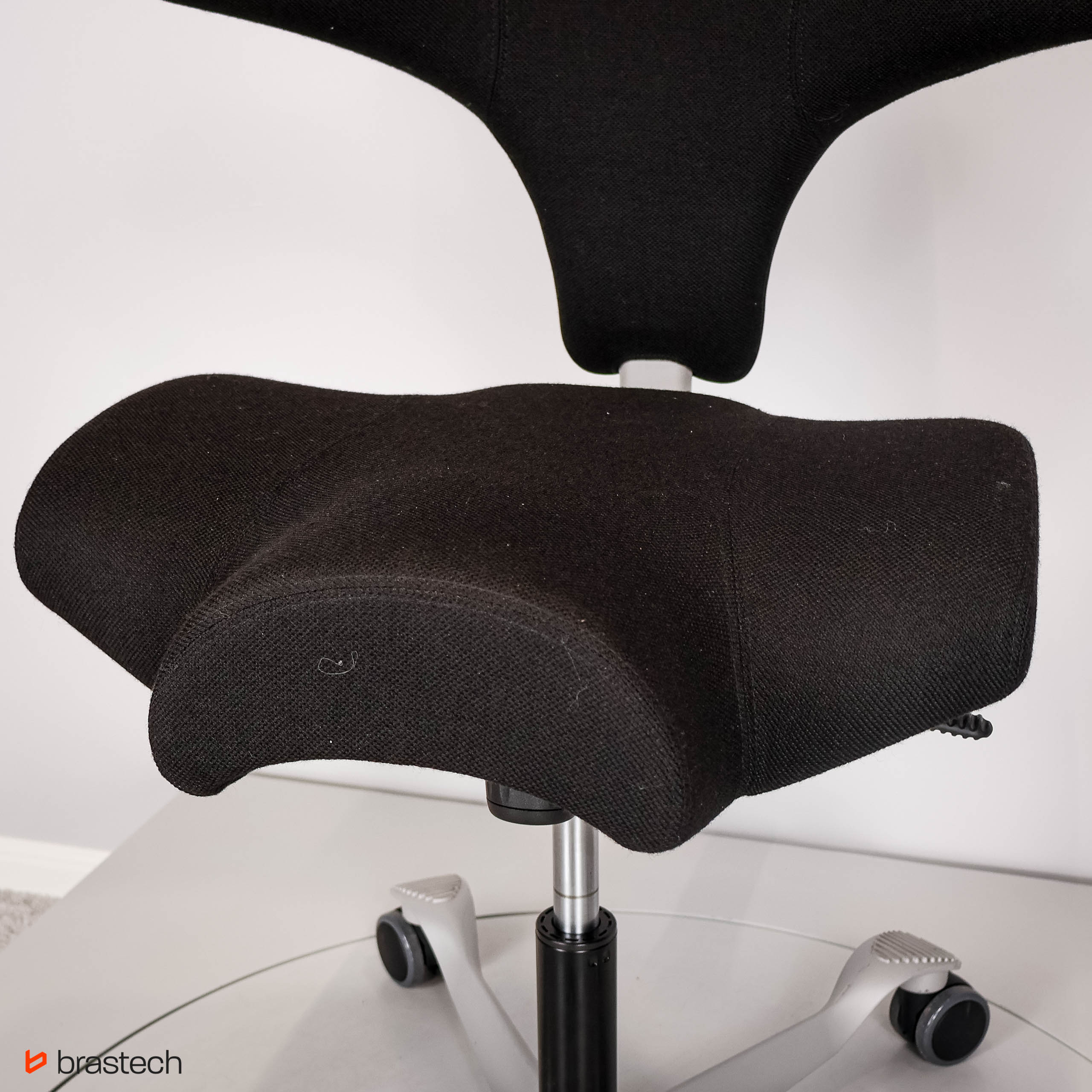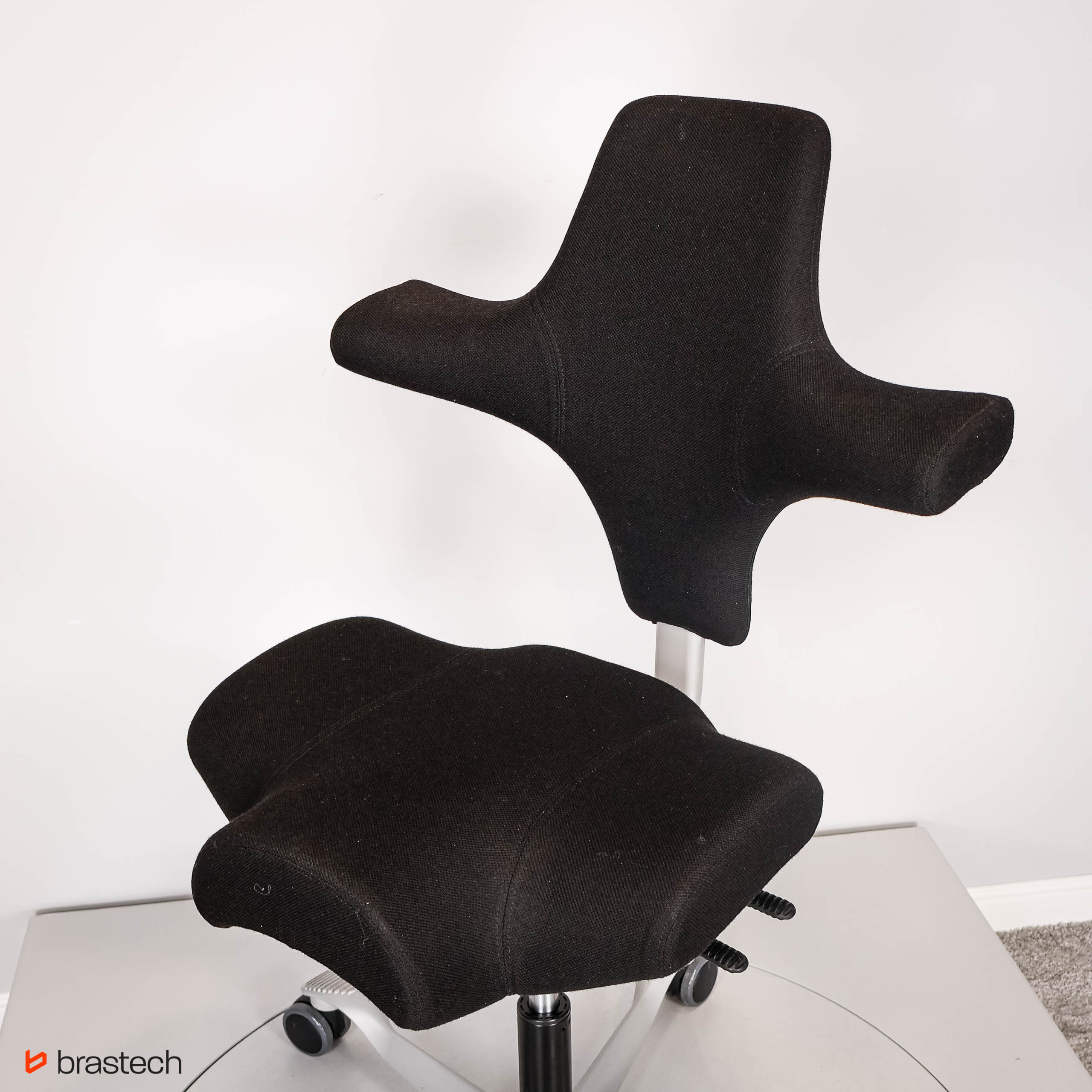 Unikalne siedzisko w kształcie siodła – umożliwia siedzenie przodem, bokiem lub tyłem, zapewniając pełną swobodę ruchów.