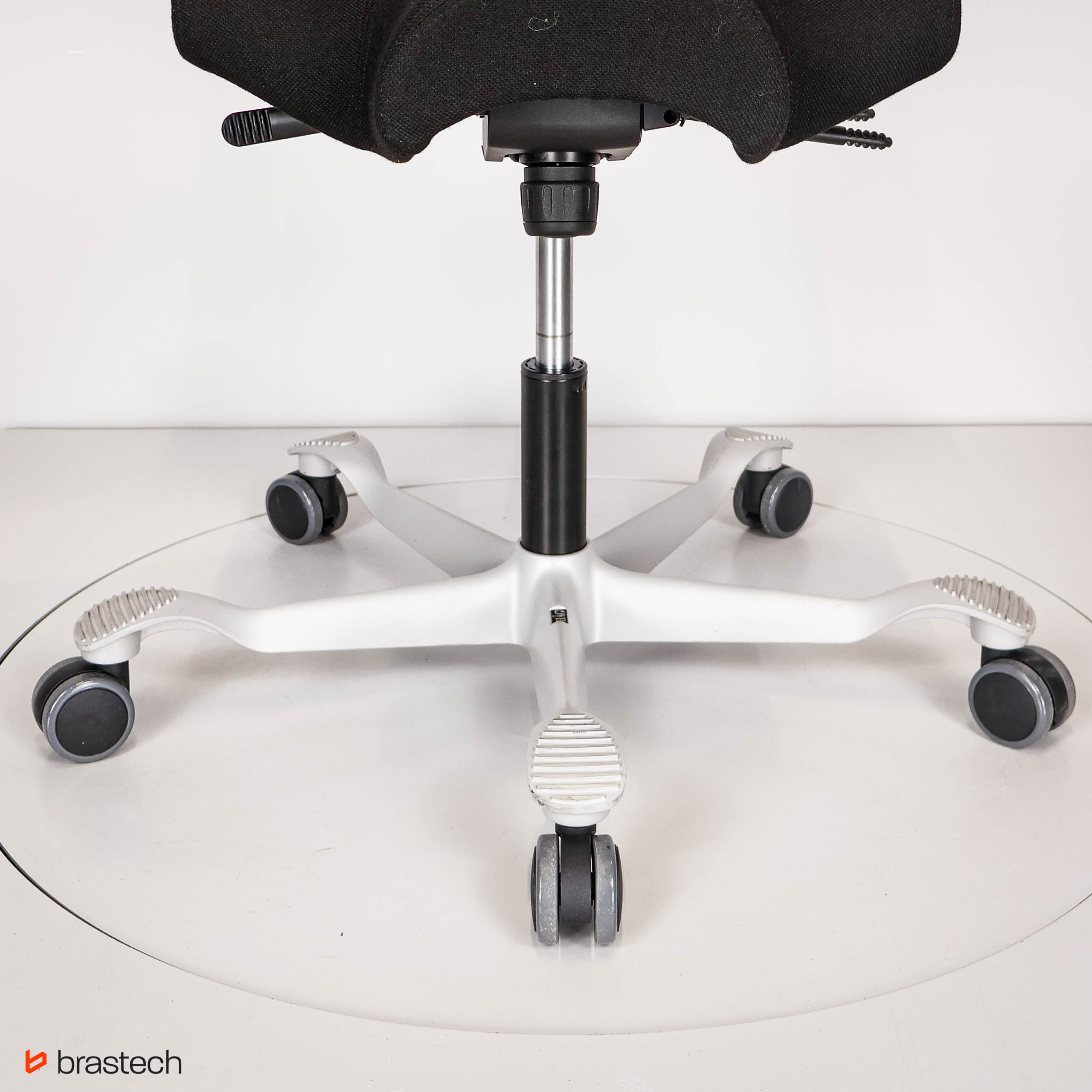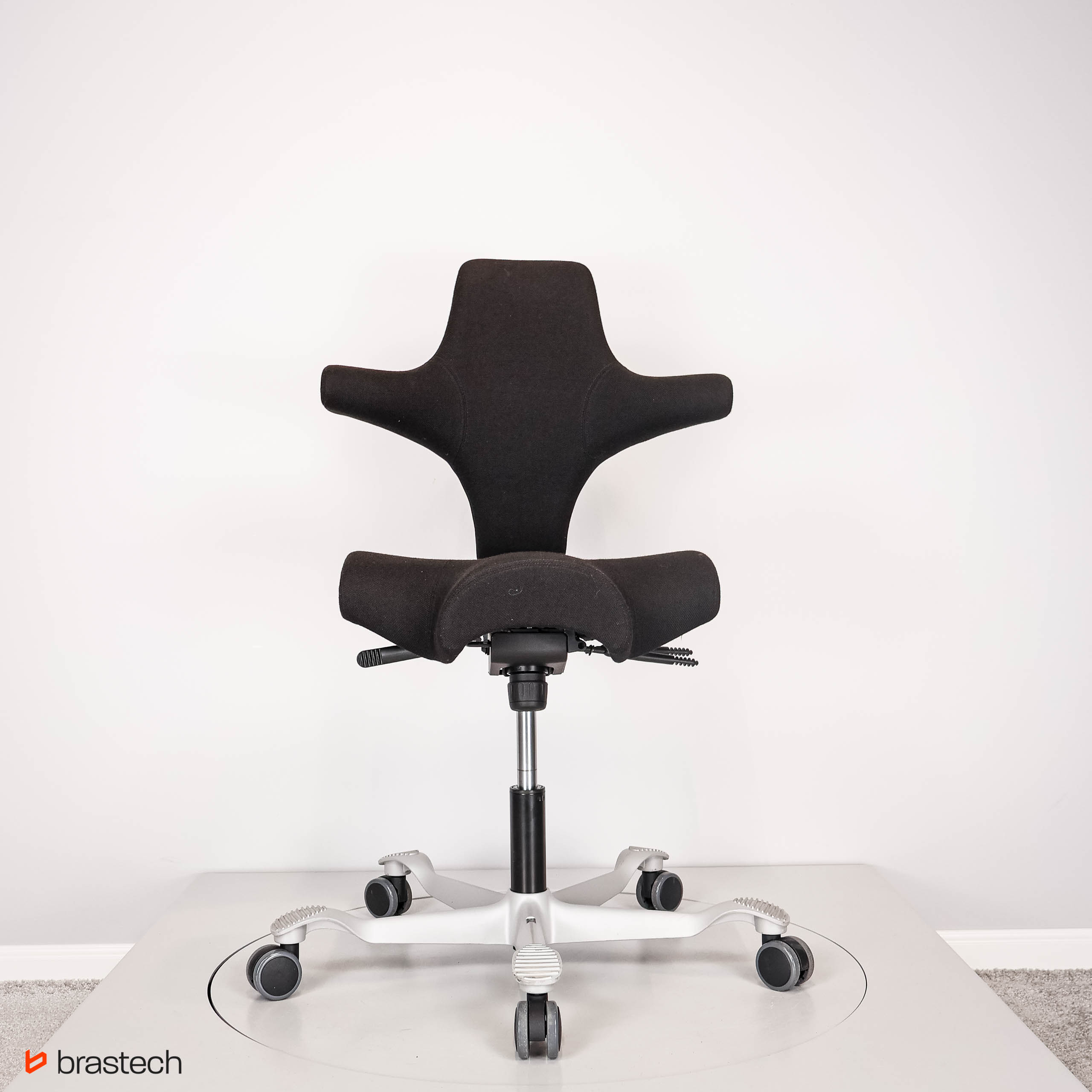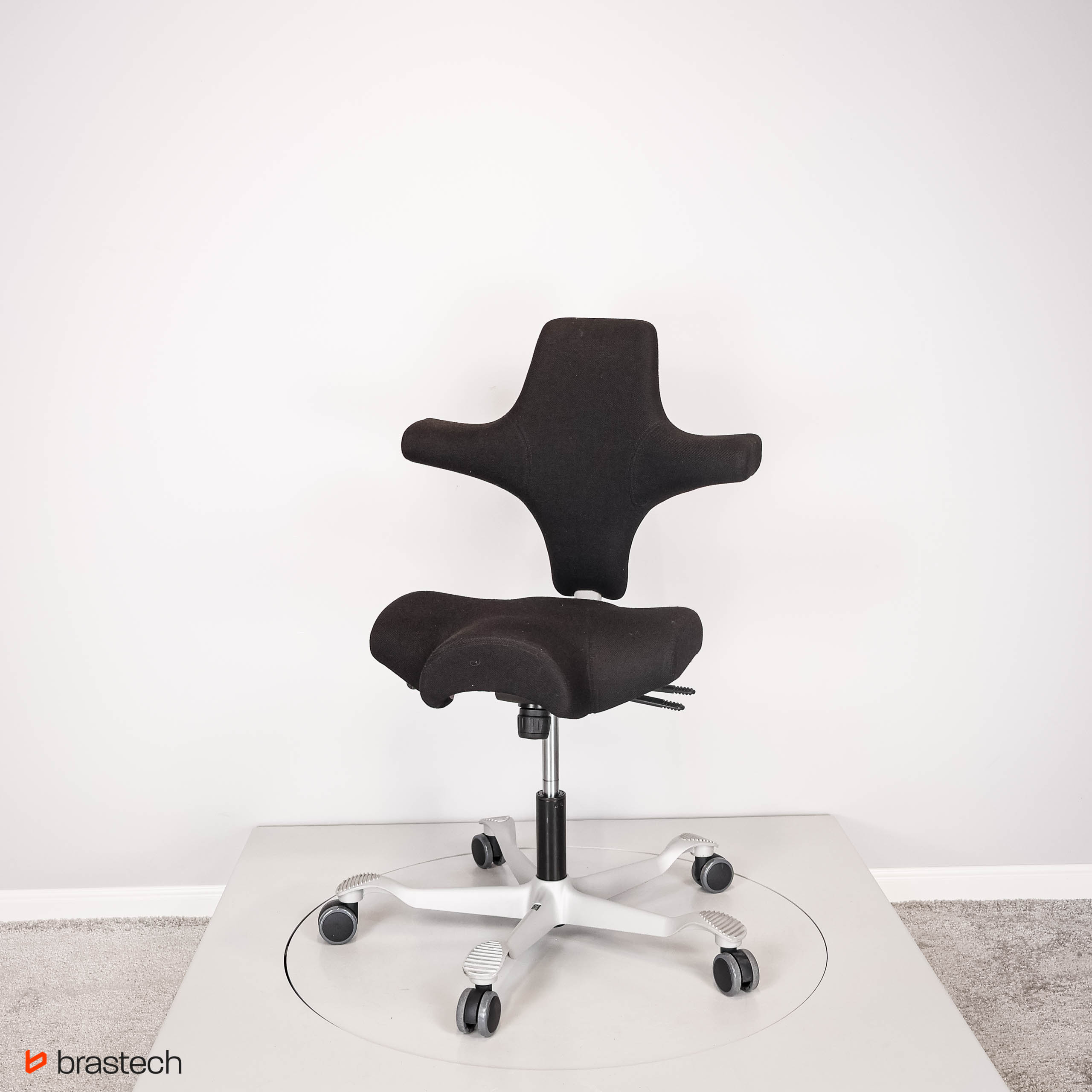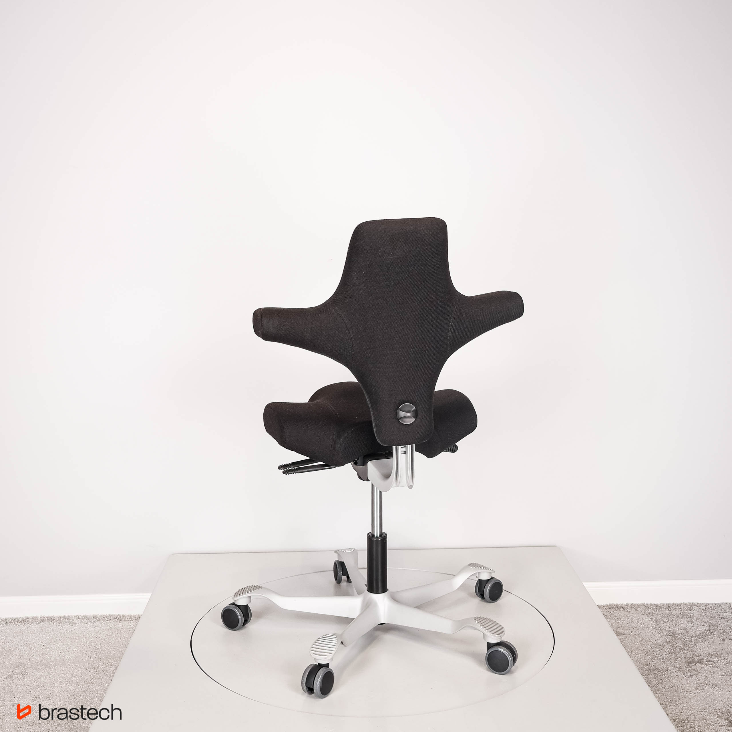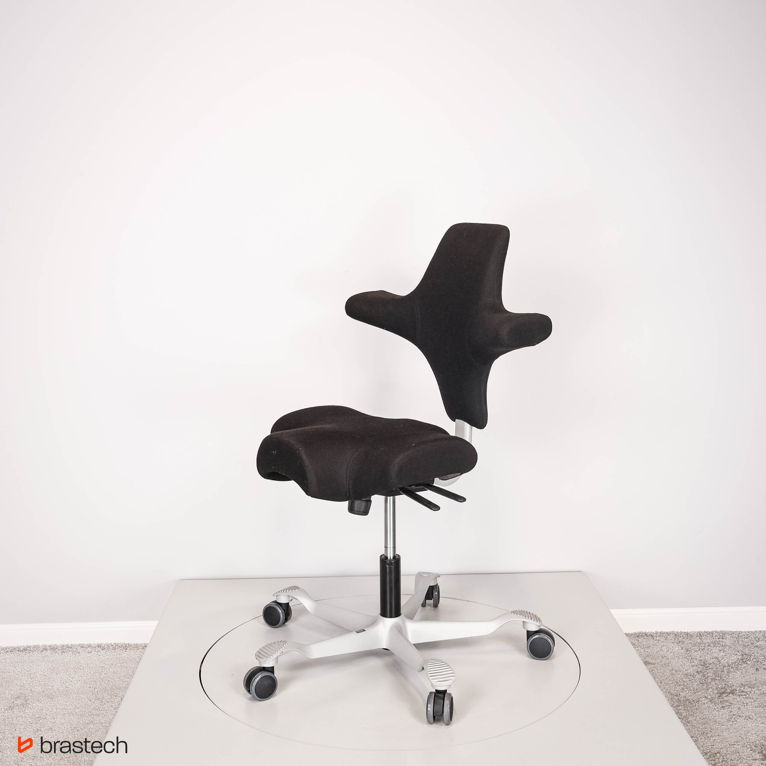 Unikalne siedzisko w kształcie siodła – umożliwia siedzenie przodem, bokiem lub tyłem, zapewniając pełną swobodę ruchów.