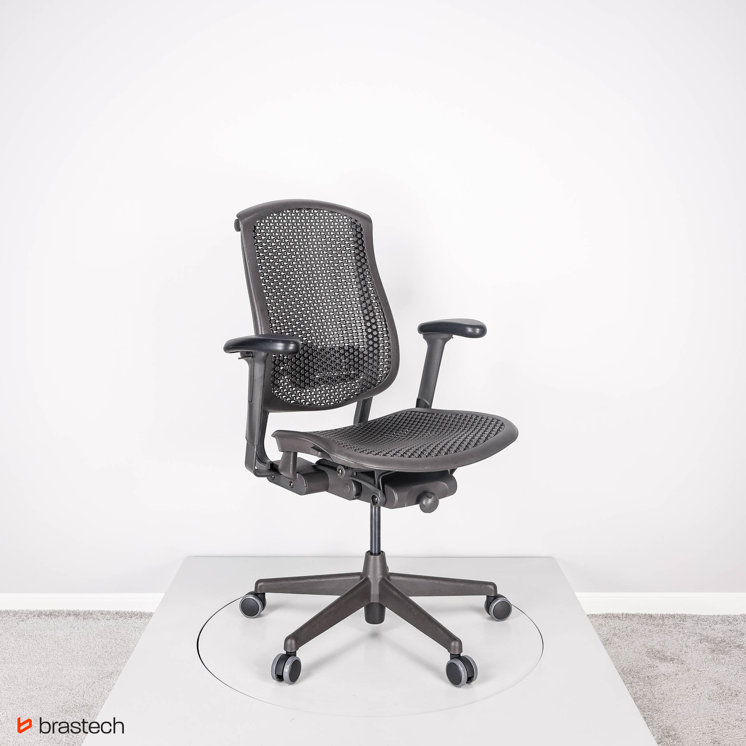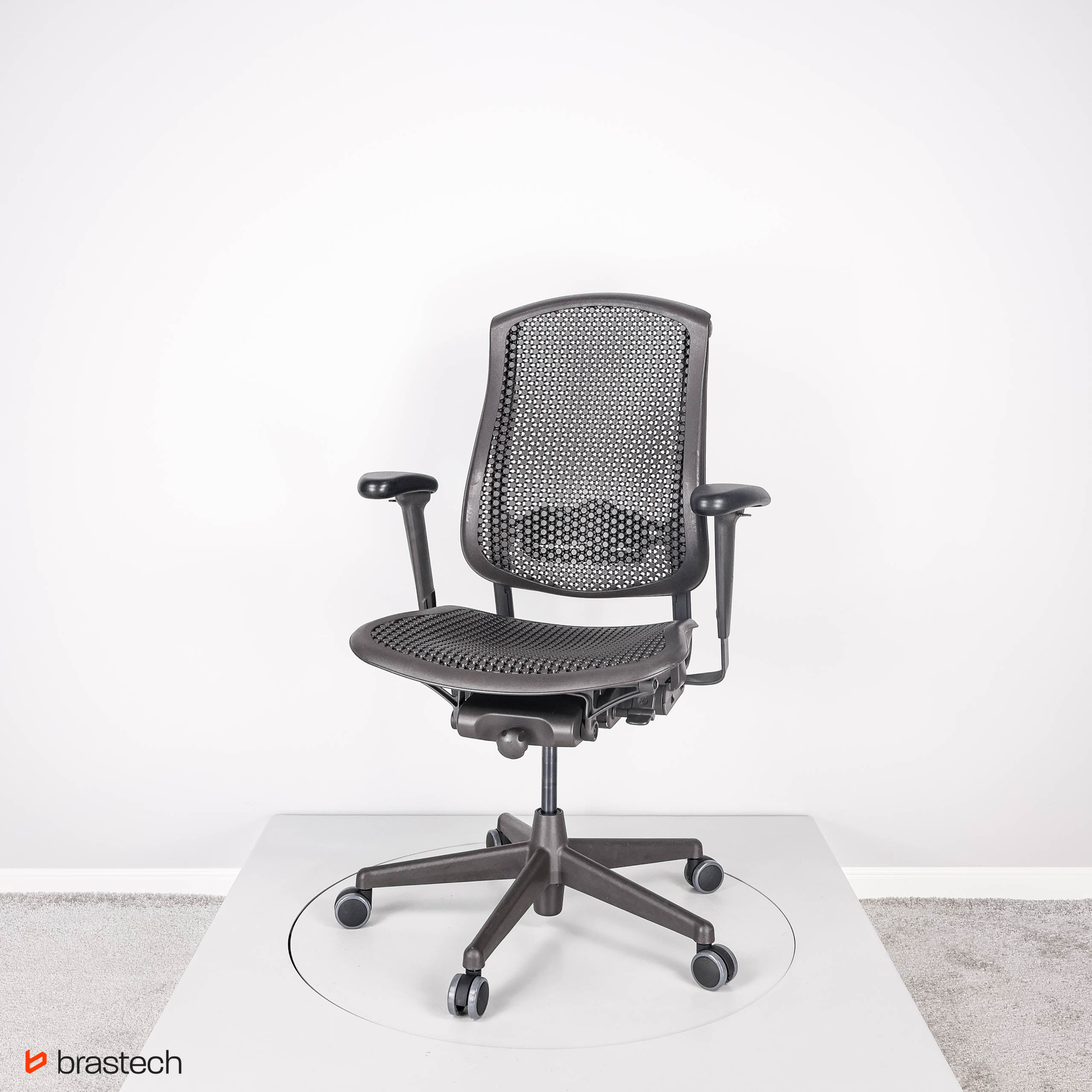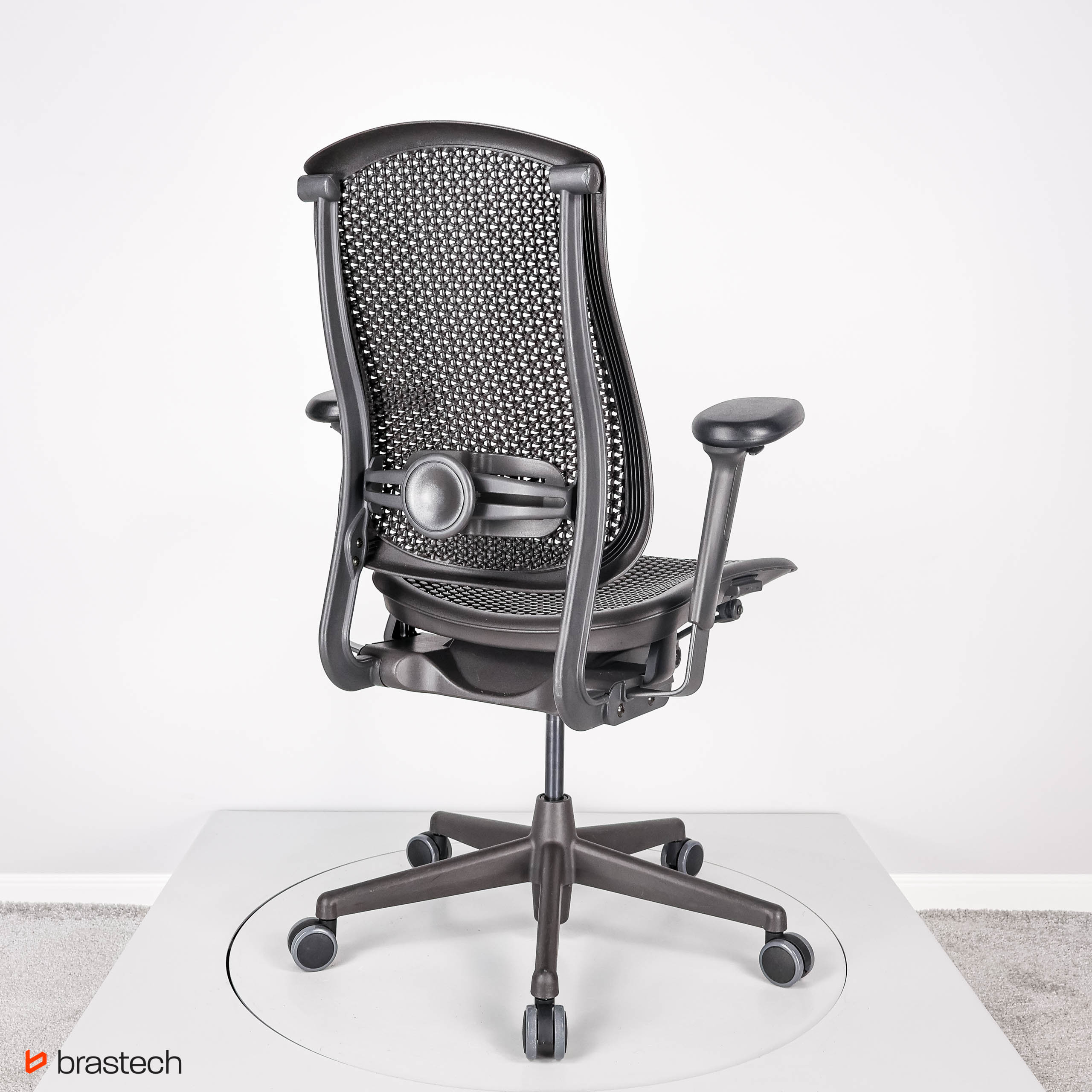 Herman Miller Celle to fotel, który wyróżnia się unikalną technologią Cellular Suspension™ – opatentowaną strukturą elastycznych komórek i łączników, tworzących sprężyste i oddychające oparcie oraz siedzisko. Dzięki temu fotel dynamicznie dopasowuje się do ruchów użytkownika, równomiernie rozkłada ciężar i zapewnia wsparcie w kluczowych strefach pleców.