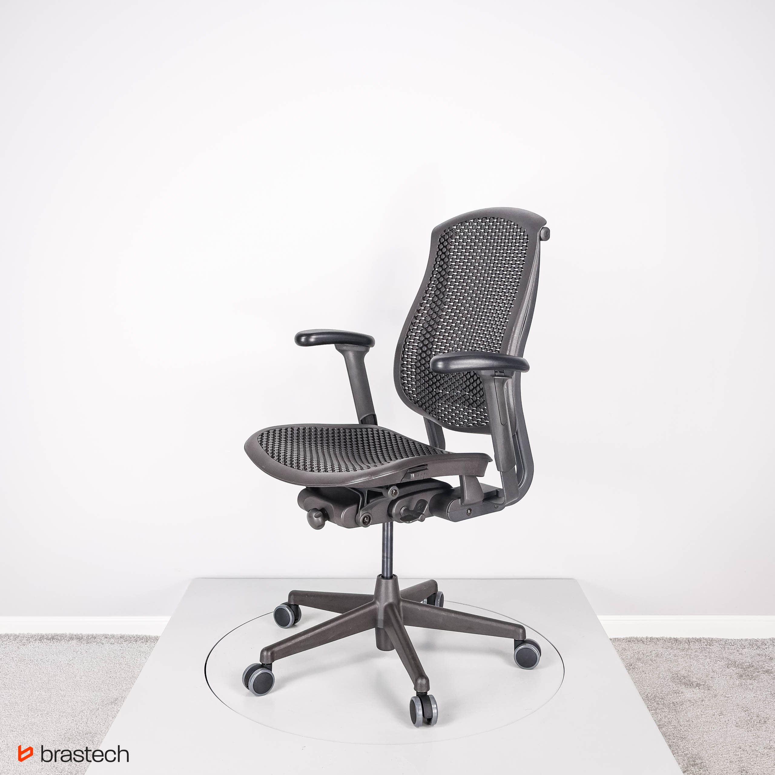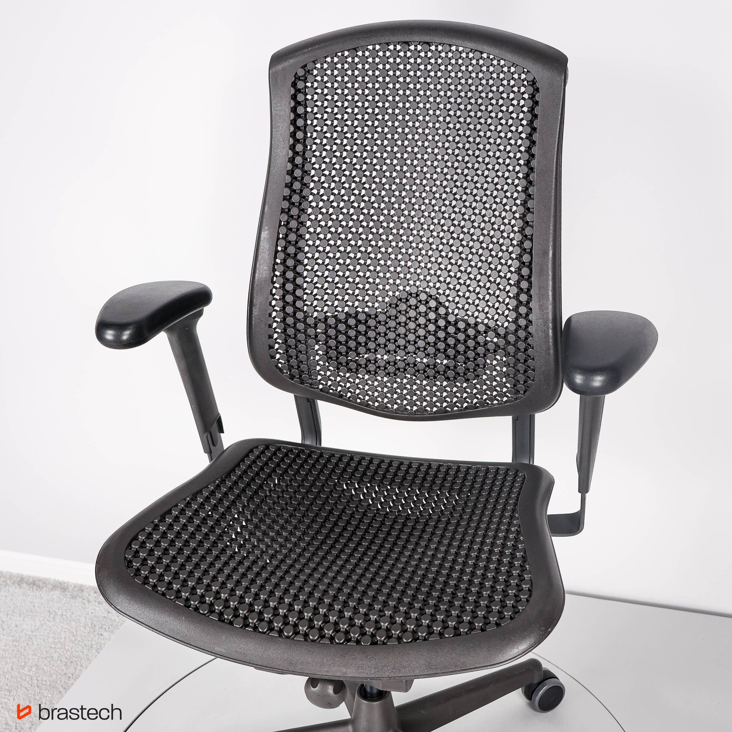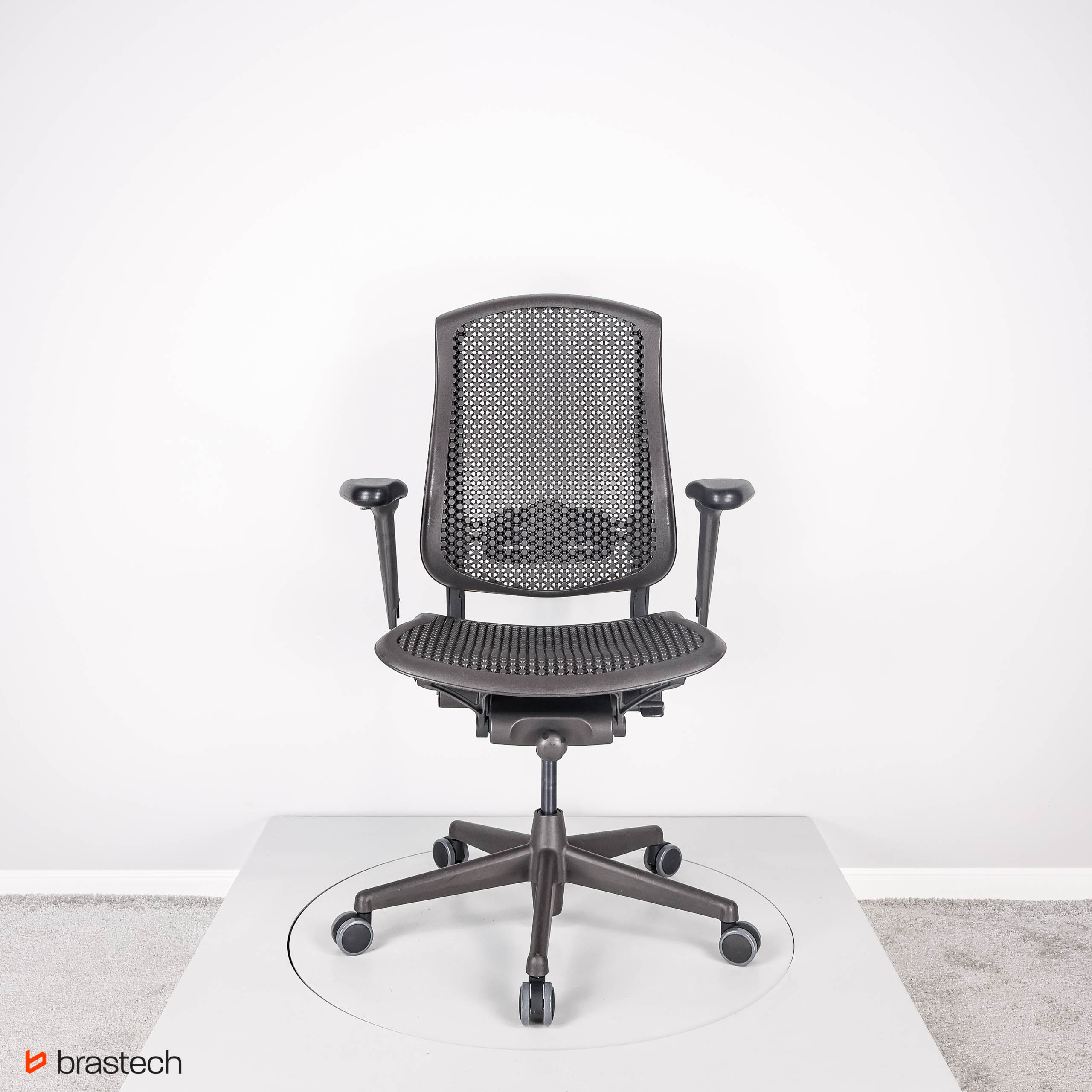 Herman Miller Celle to fotel, który wyróżnia się unikalną technologią Cellular Suspension™ – opatentowaną strukturą elastycznych komórek i łączników, tworzących sprężyste i oddychające oparcie oraz siedzisko. Dzięki temu fotel dynamicznie dopasowuje się do ruchów użytkownika, równomiernie rozkłada ciężar i zapewnia wsparcie w kluczowych strefach pleców.