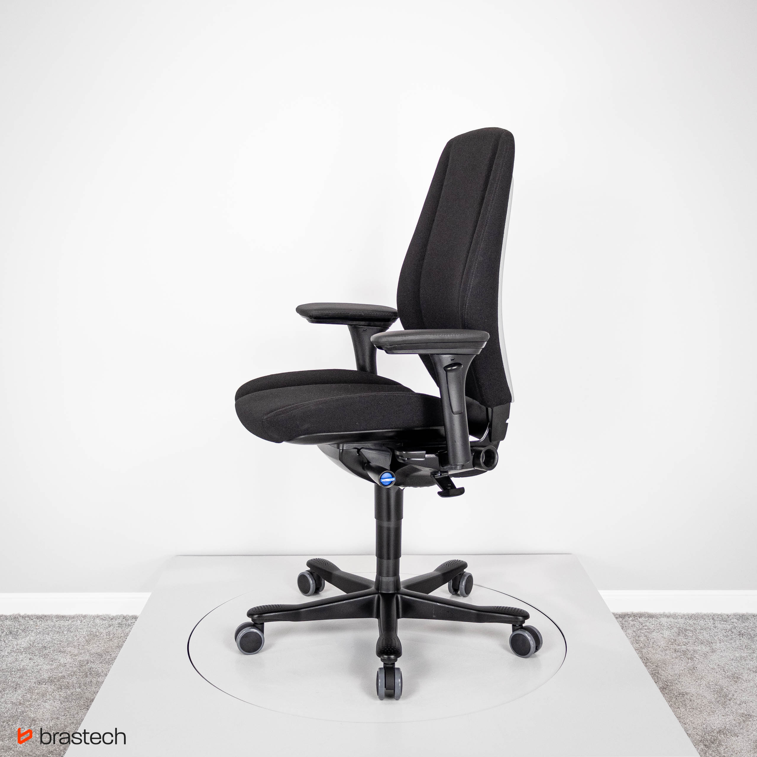 Pełna regulacja – wysokość i głębokość siedziska, opór i kąt odchylenia, blokada oparcia w wielu pozycjach.