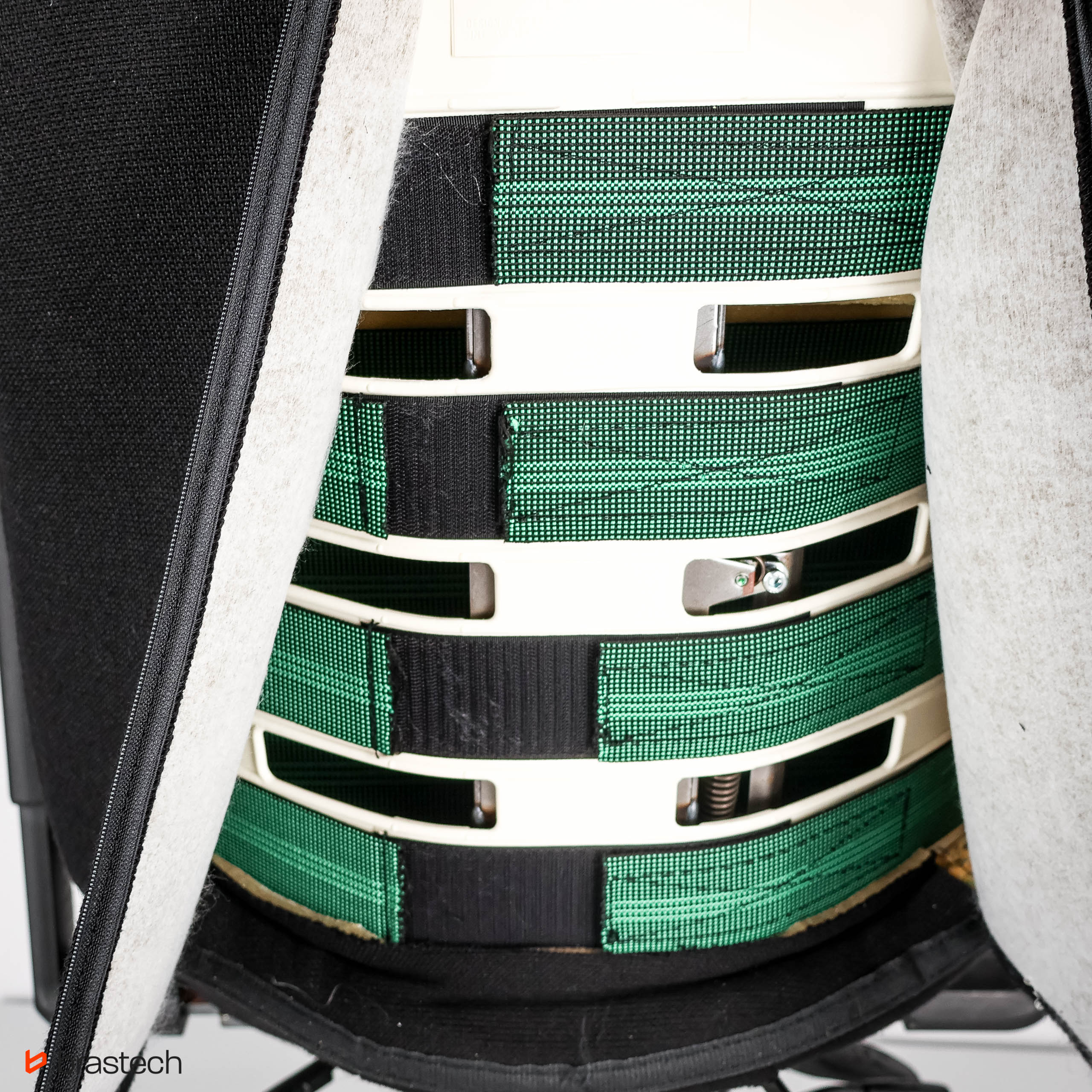 System regulacji pasami – elastyczne pasy w oparciu umożliwiają precyzyjne ustawienie podparcia pleców w różnych strefach.