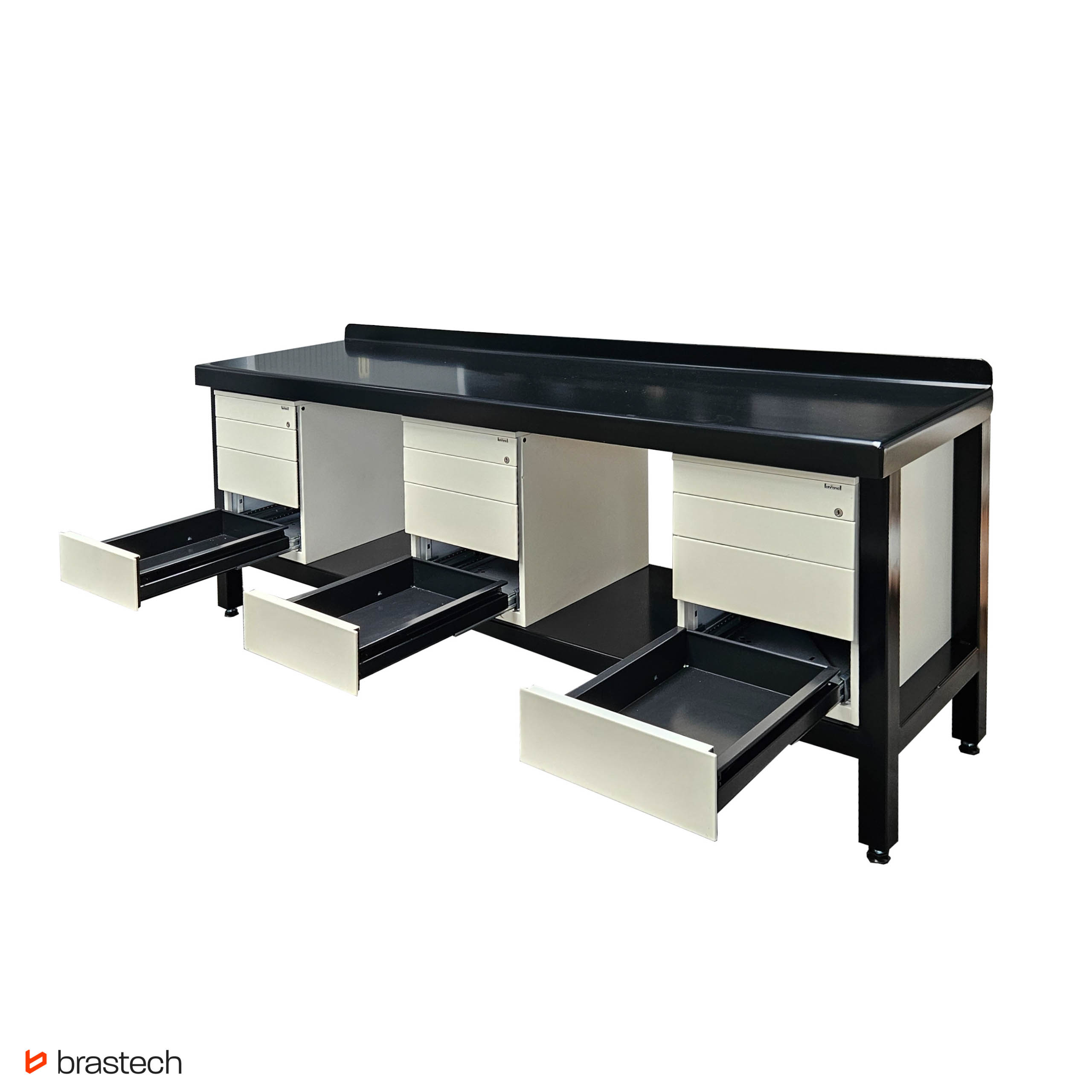 • Perfekcyjna organizacja – Trzy szafki o wymiarach 58 x 55 x 57 cm [WxSxD] z 4 szufladami.