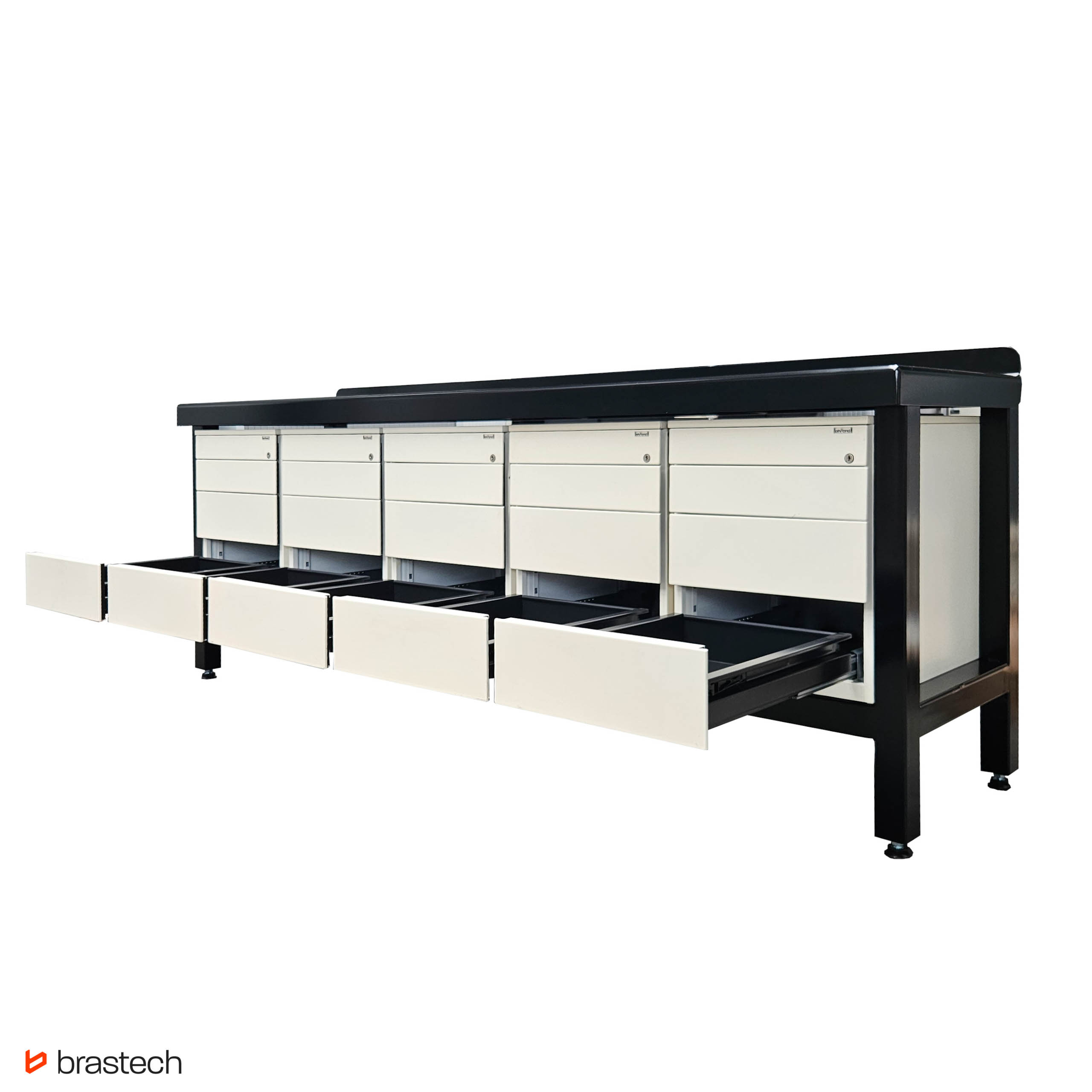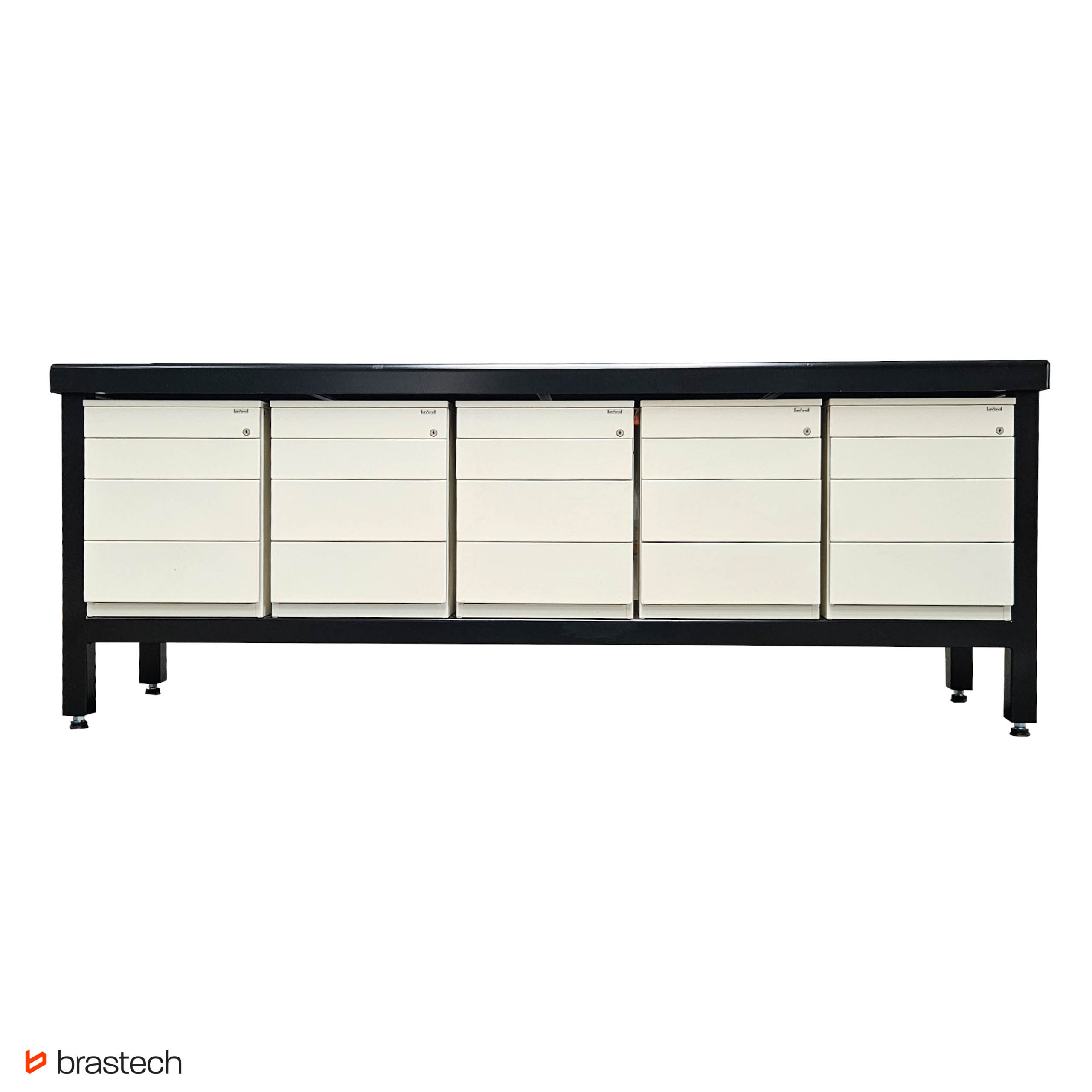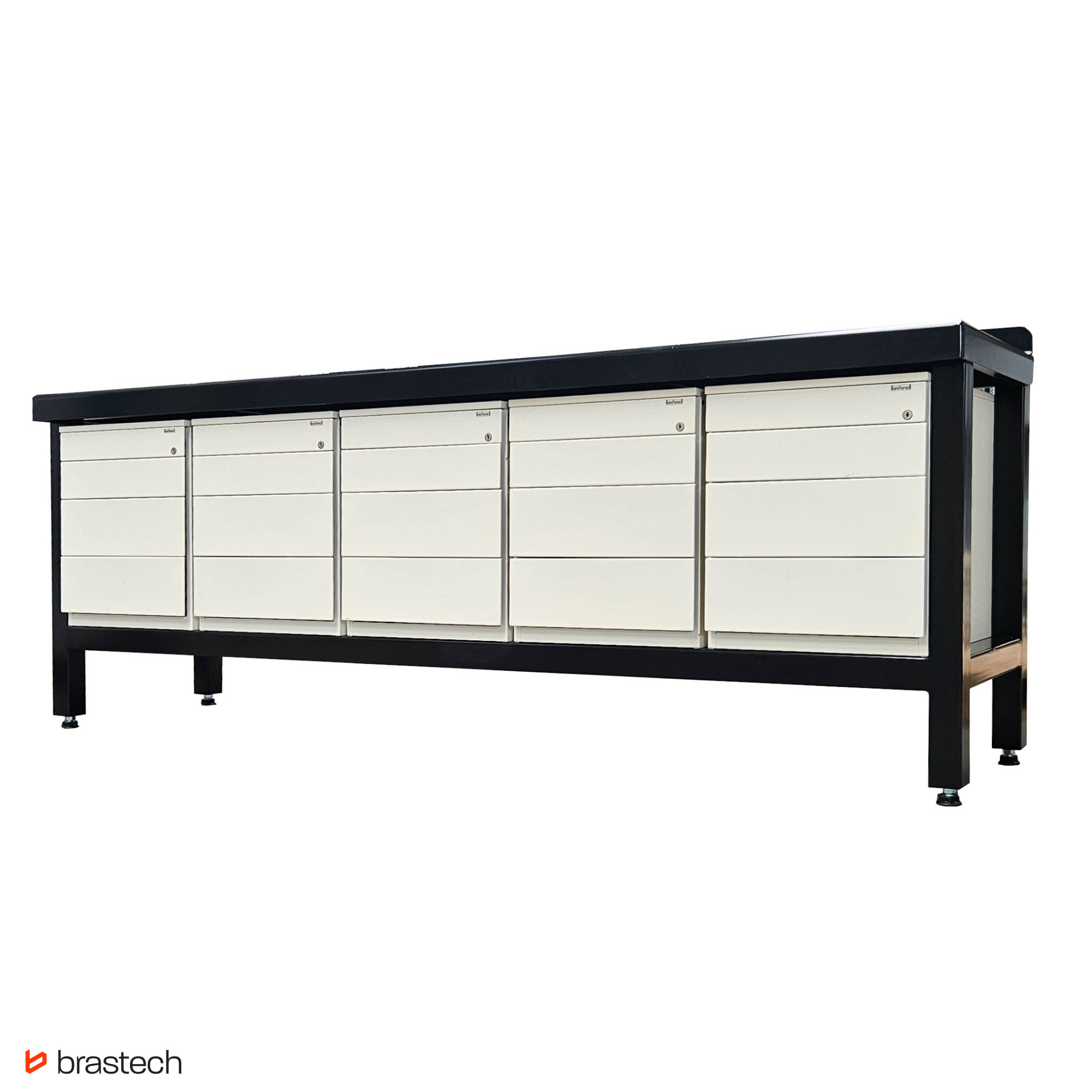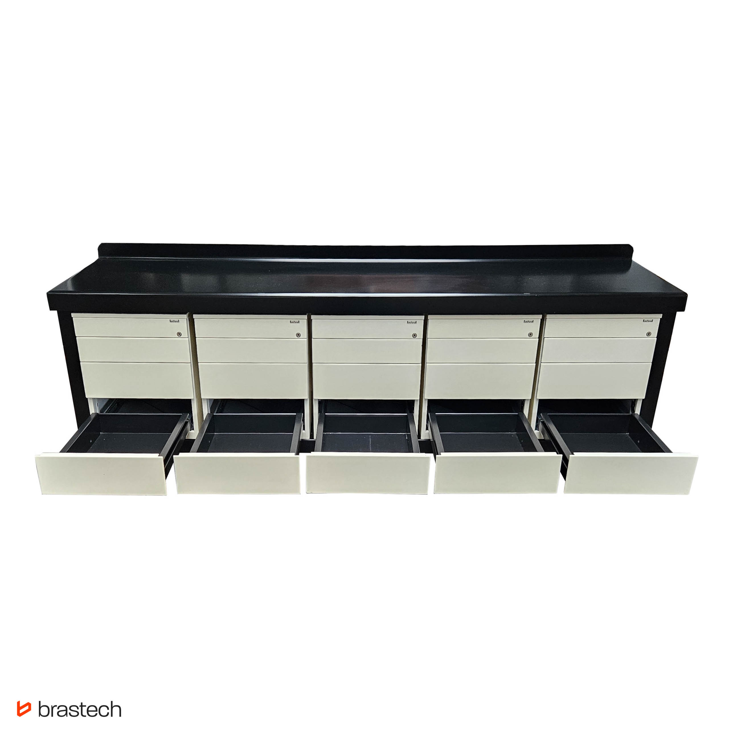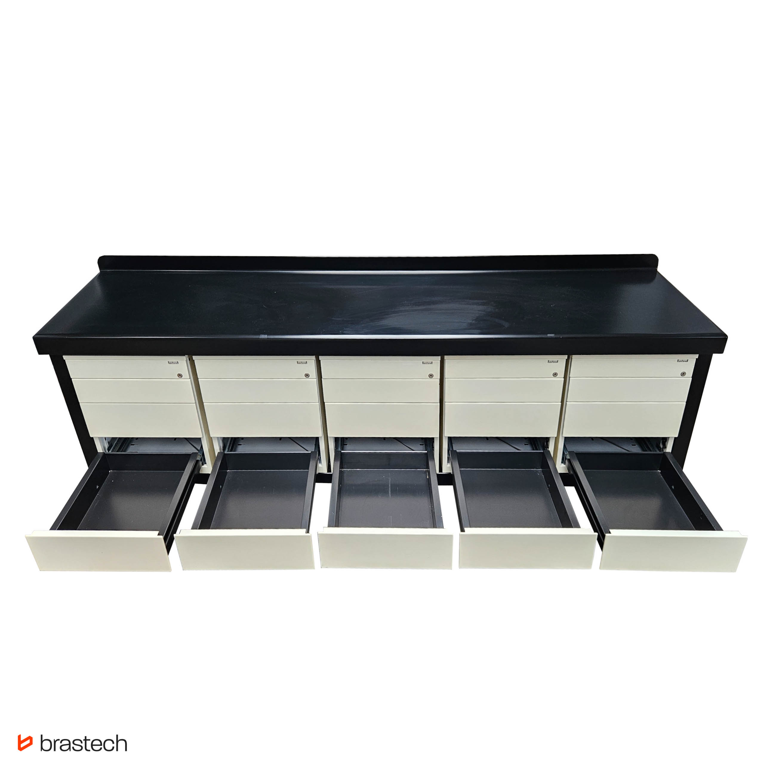 Perfekcyjna organizacja – Pięć szafek o wymiarach 58 x 55 x 57 cm [WxSxD] z 4 szufladami.