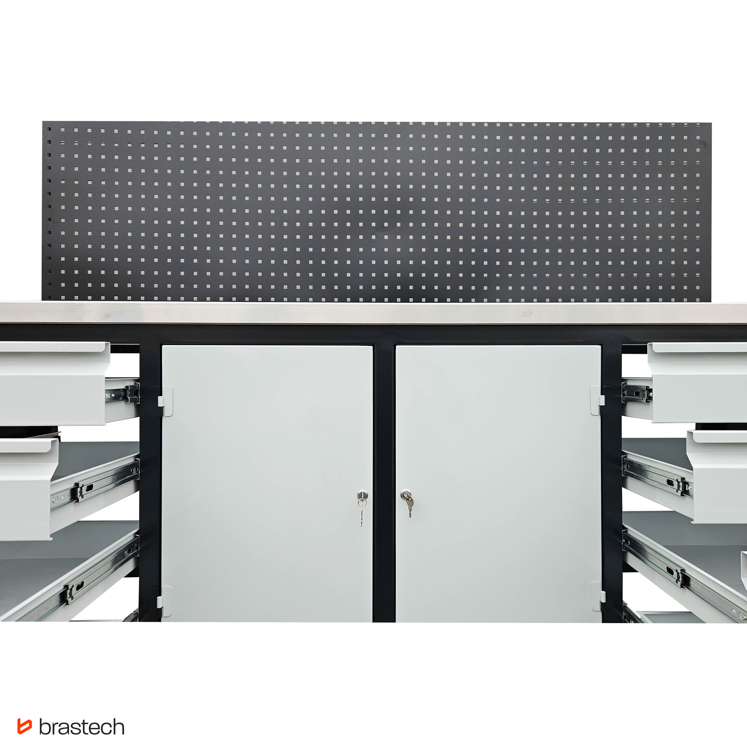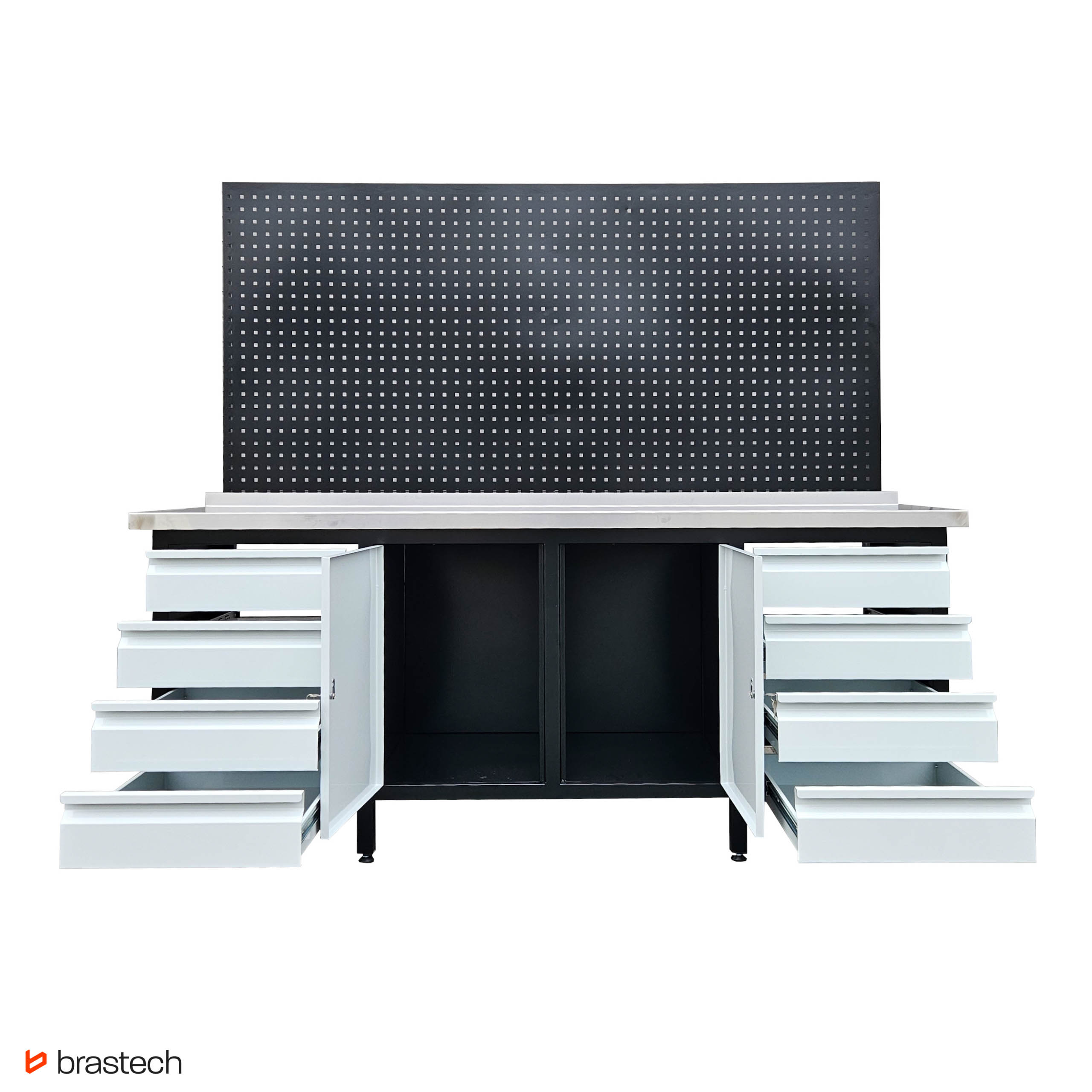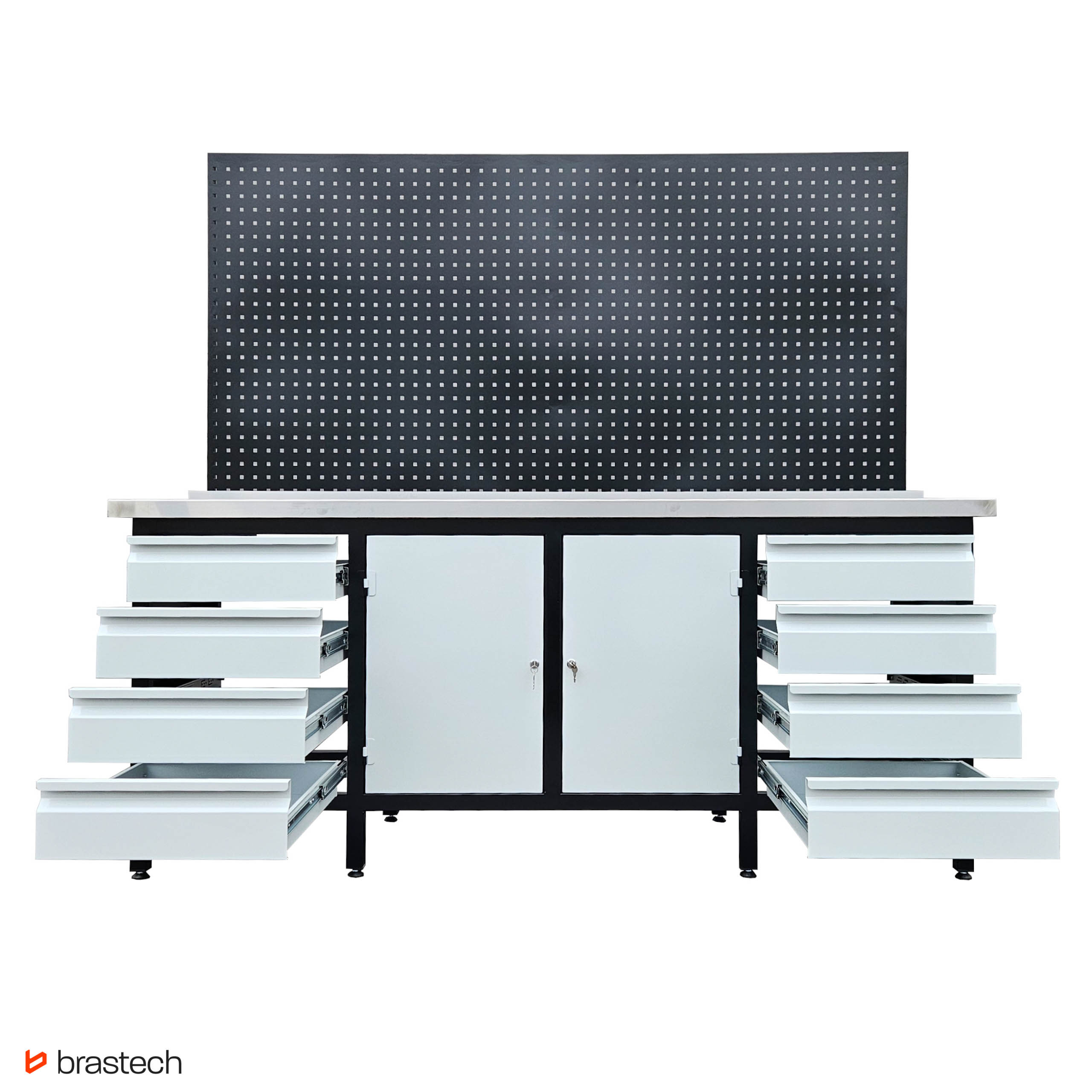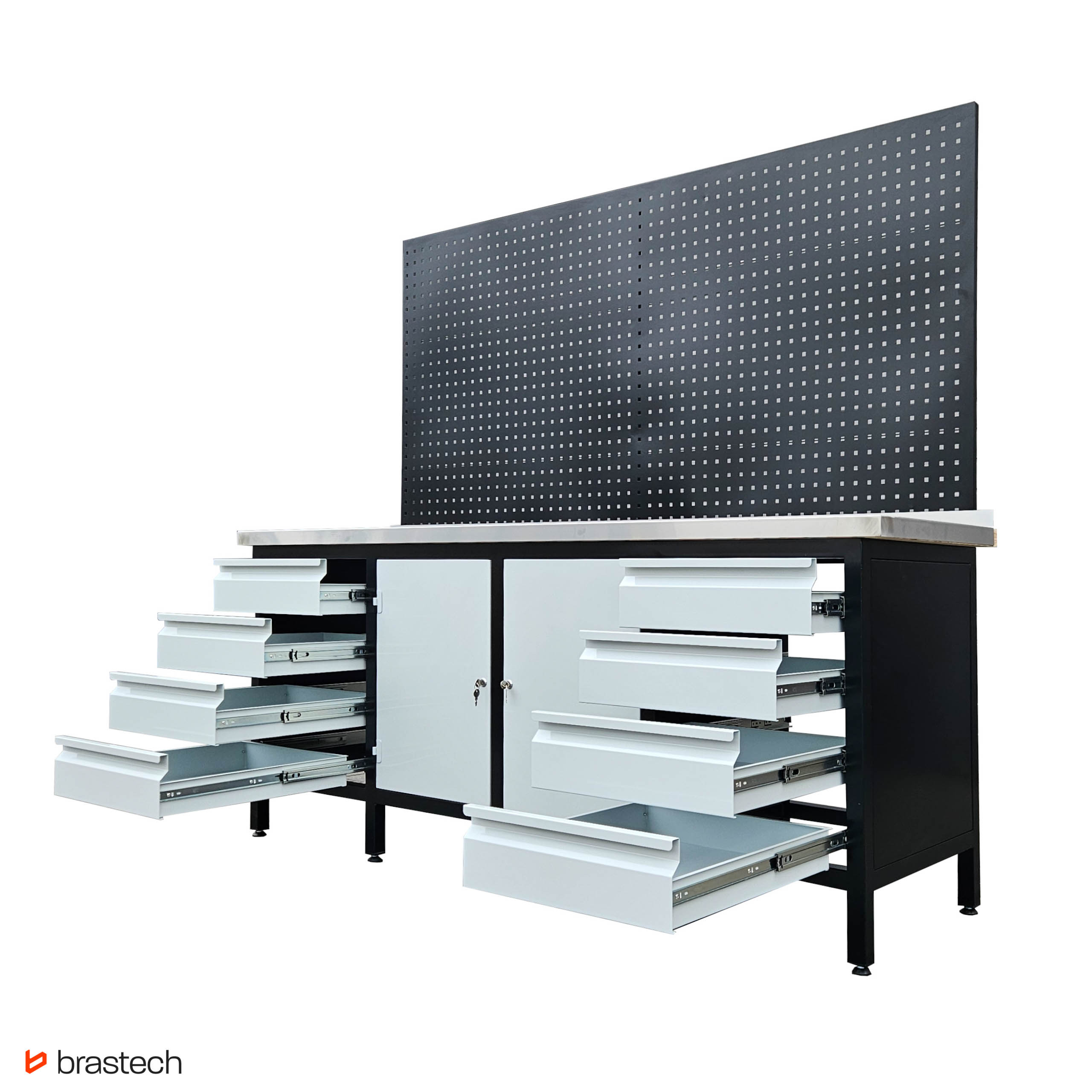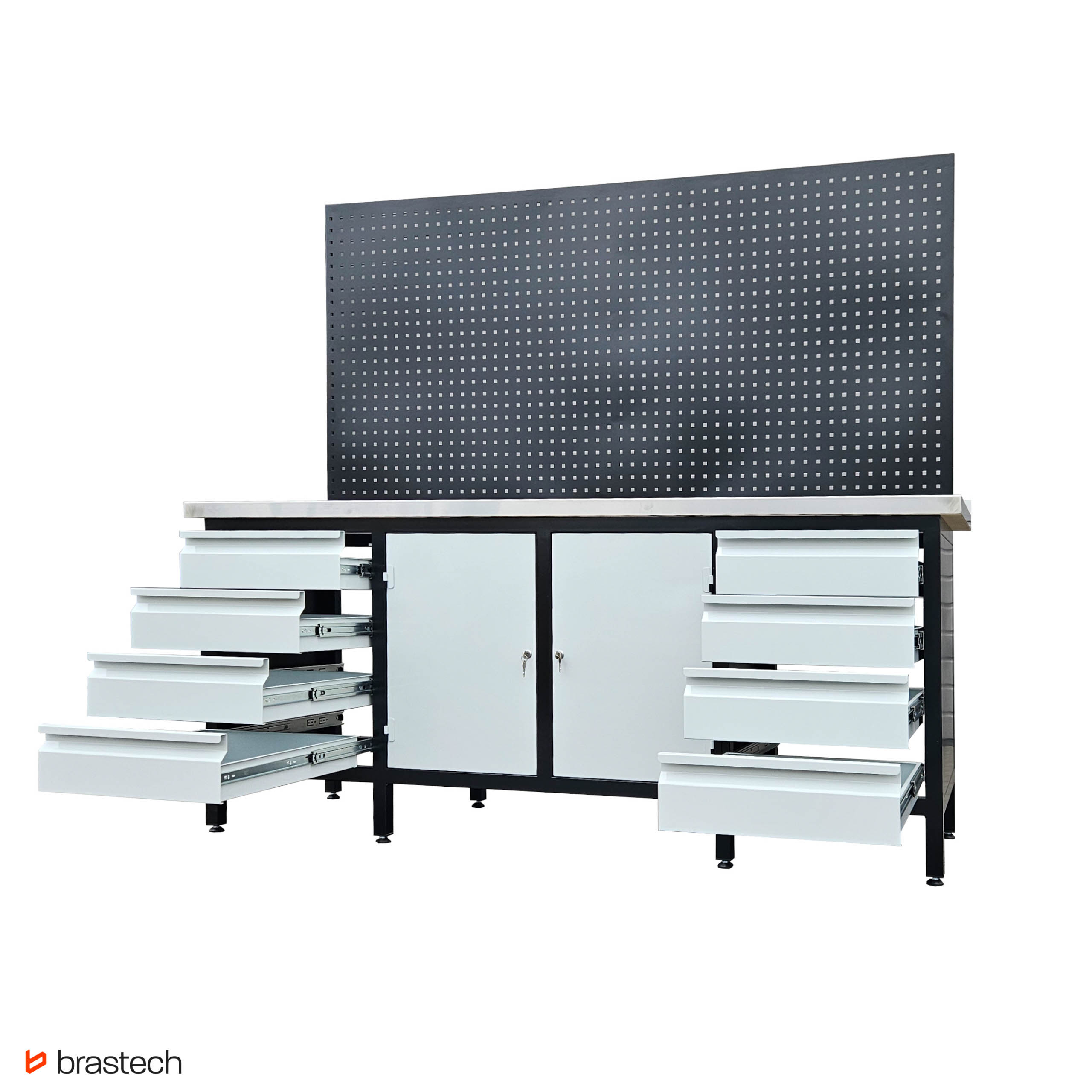 | Uwagi | Wersja z nakładką na blat ze stali nierdzewnej 1mm INOX, nakładany oraz tablicą narzędziową perforowaną 100 x 200 cm |