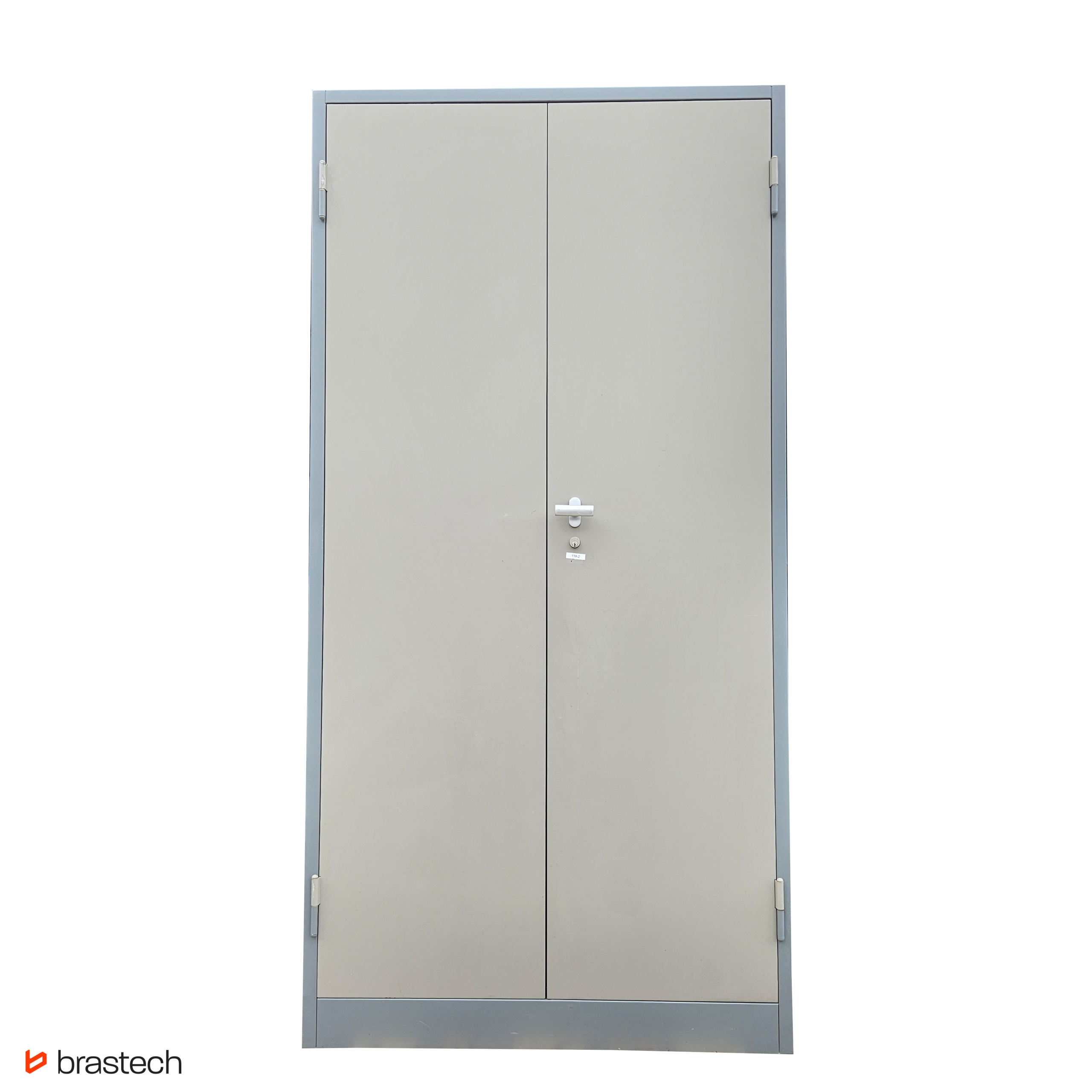 Dwuskrzydłowe drzwi z uchwytem i zamkiem – klasyczne otwieranie na zawiasach zapewnia pełny dostęp do wnętrza szafy. Drzwi opcjonalnie mogą być wyposażone są w zamek z kluczem, który chroni zawartość przed dostępem osób nieuprawnionych.