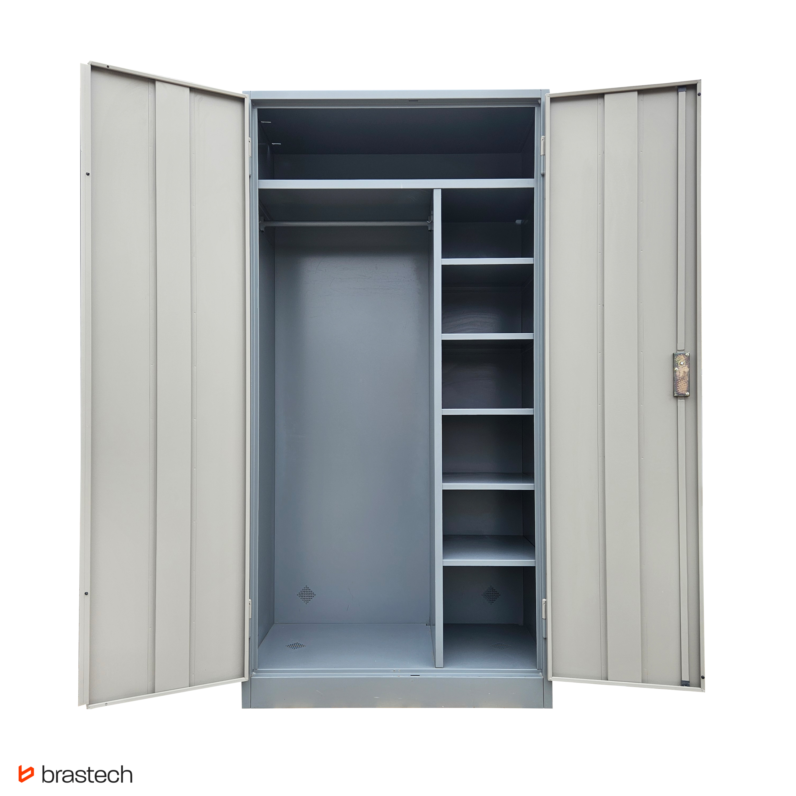 Wytrzymała stalowa konstrukcja – malowana proszkowo, odporna na korozję i zarysowania, gwarantuje długą żywotność oraz łatwe utrzymanie szafy w czystości.