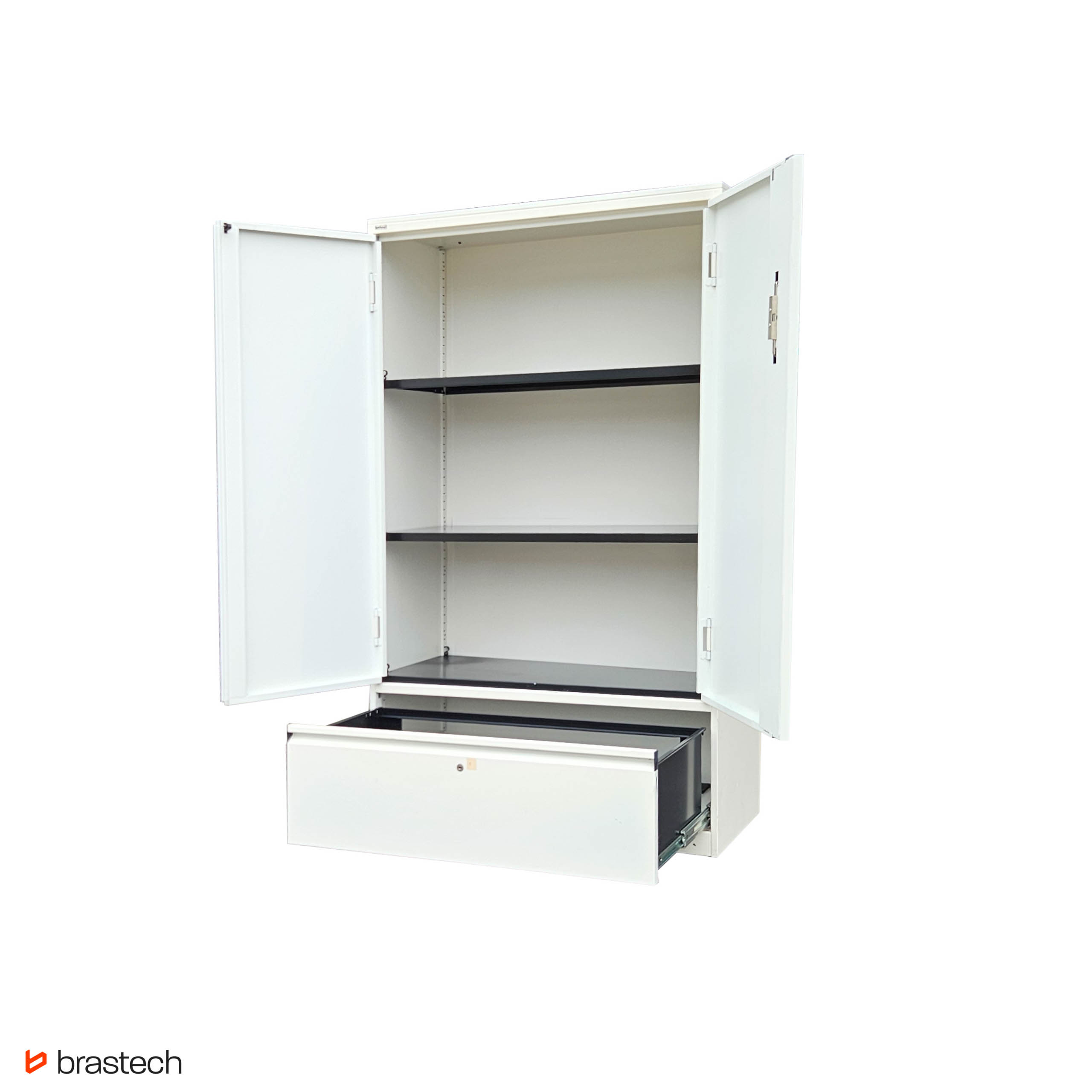 Wytrzymała stalowa konstrukcja – malowana proszkowo, odporna na korozję i zarysowania, gwarantuje długą żywotność oraz łatwe utrzymanie szafy w czystości.