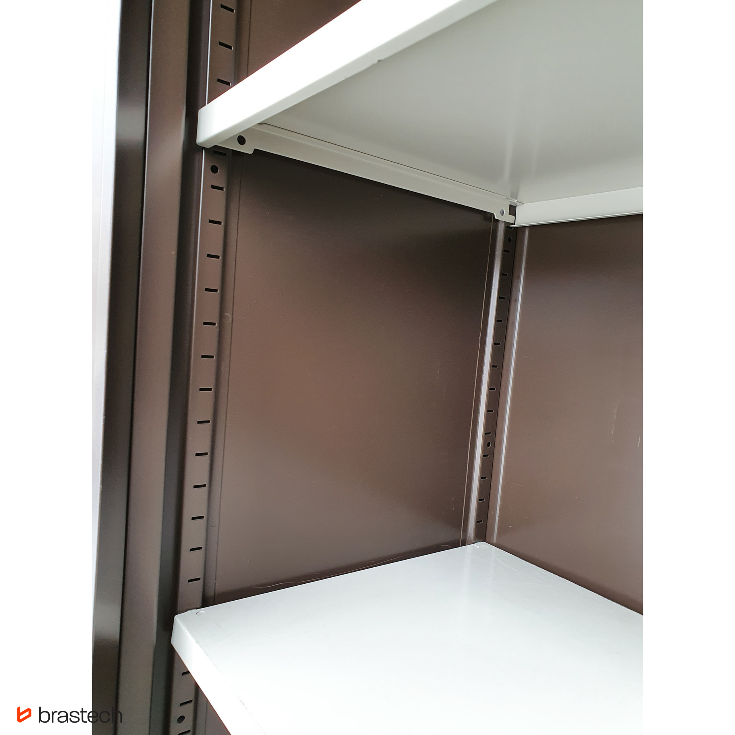 Wytrzymała stalowa konstrukcja – malowana proszkowo, odporna na korozję i zarysowania, gwarantuje długą żywotność oraz łatwe utrzymanie szafy w czystości.