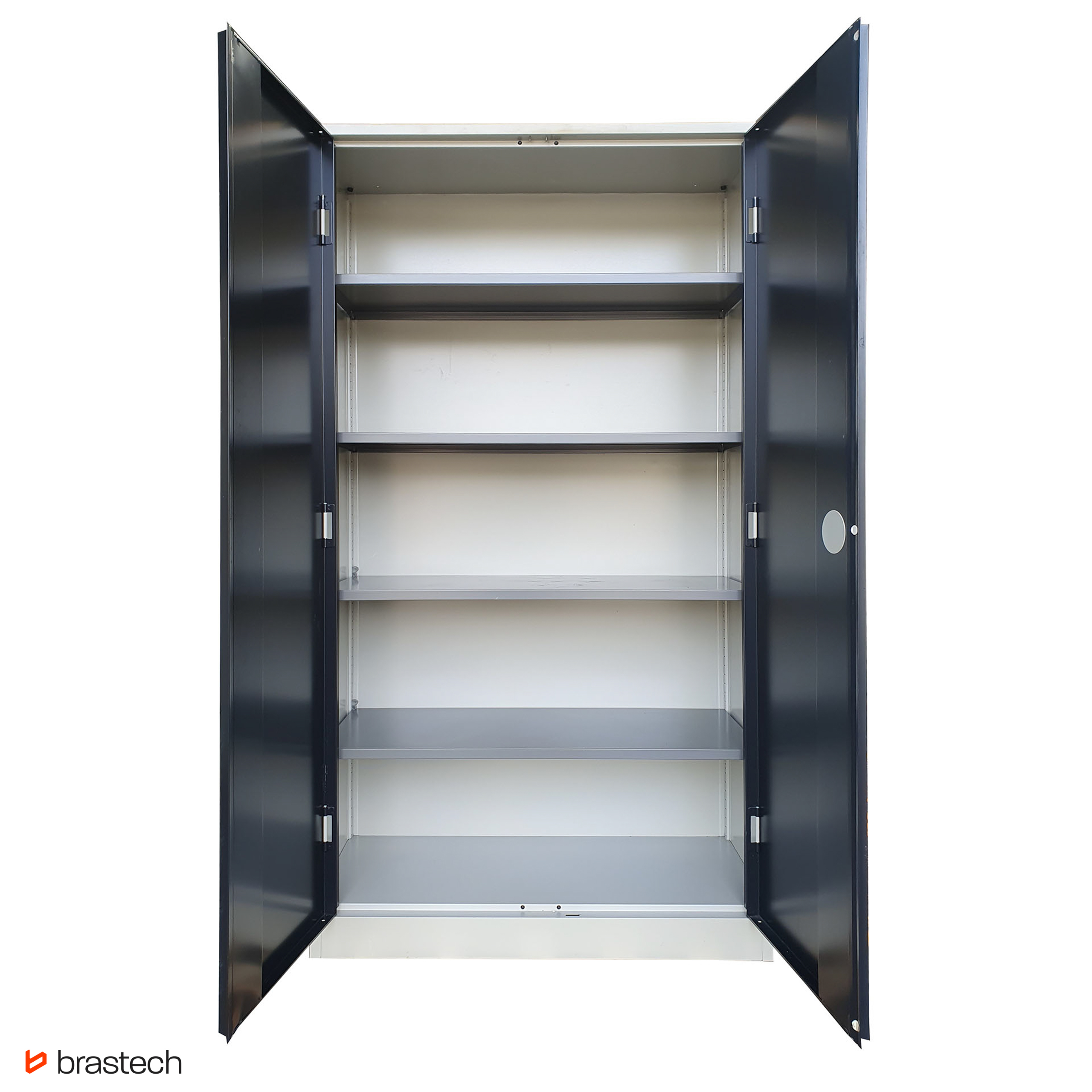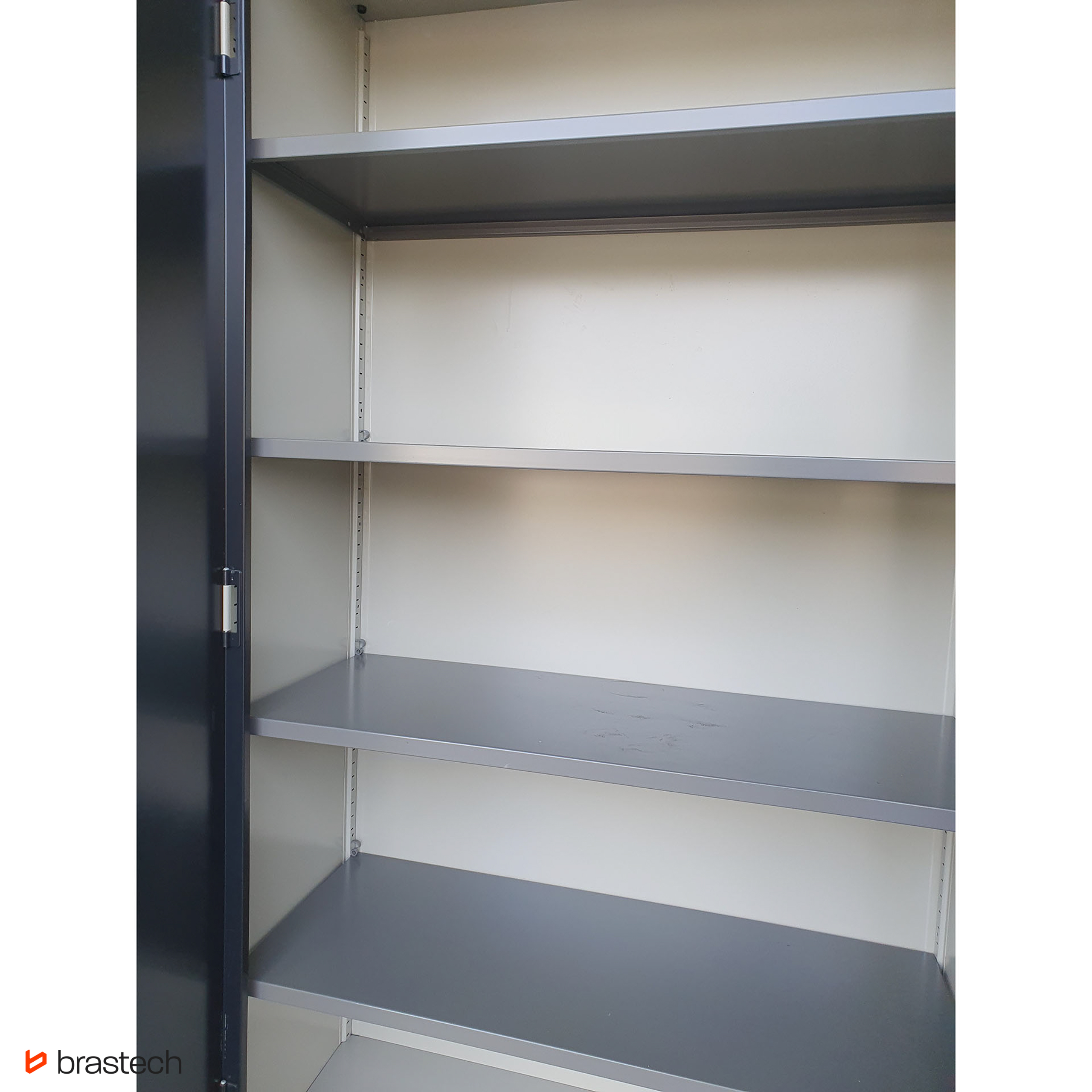 Wytrzymała stalowa konstrukcja – malowana proszkowo, odporna na korozję i zarysowania, gwarantuje długą żywotność oraz łatwe utrzymanie szafy w czystości.