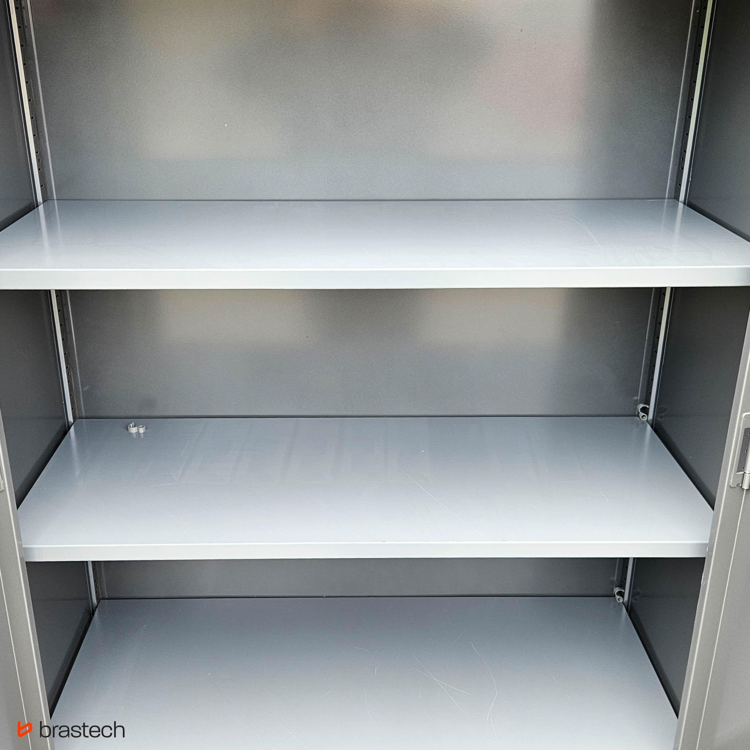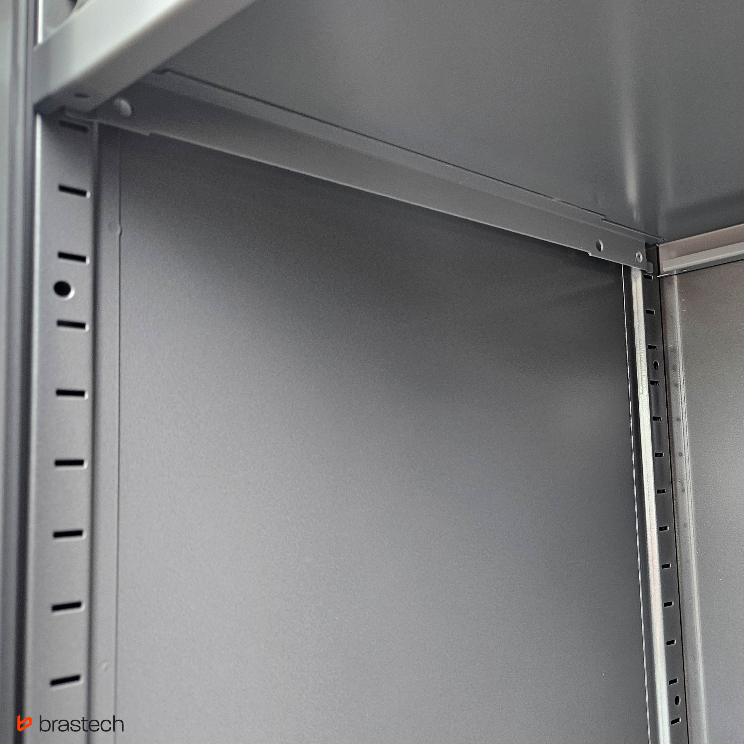 Wytrzymała stalowa konstrukcja – malowana proszkowo, odporna na korozję i zarysowania, gwarantuje długą żywotność oraz łatwe utrzymanie szafy w czystości.