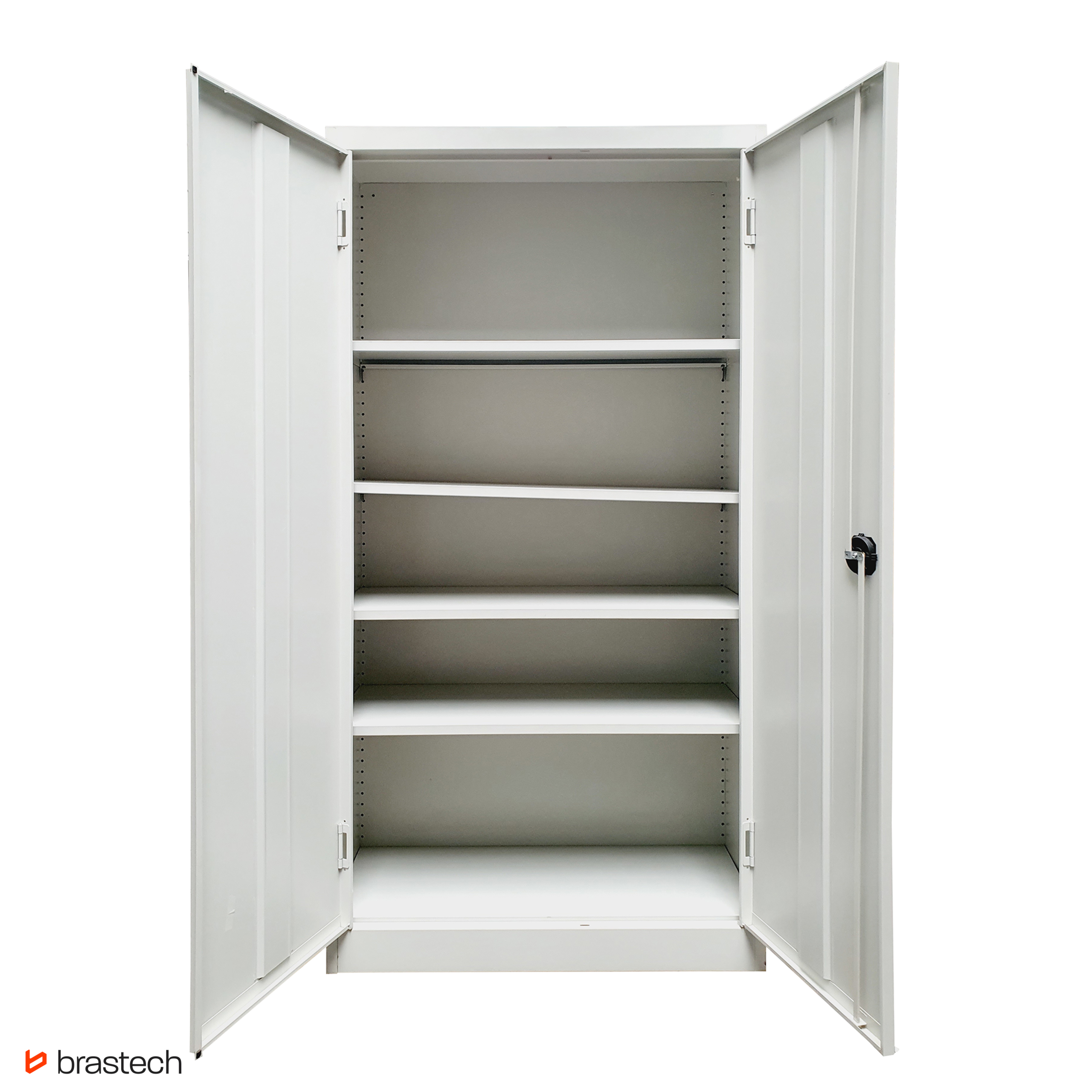 • Dwuskrzydłowe drzwi z uchwytem i zamkiem – klasyczne otwieranie na zawiasach zapewnia pełny dostęp do wnętrza szafy. Drzwi opcjonalnie mogą być wyposażone są w zamek z kluczem, który chroni zawartość przed dostępem osób nieuprawnionych.