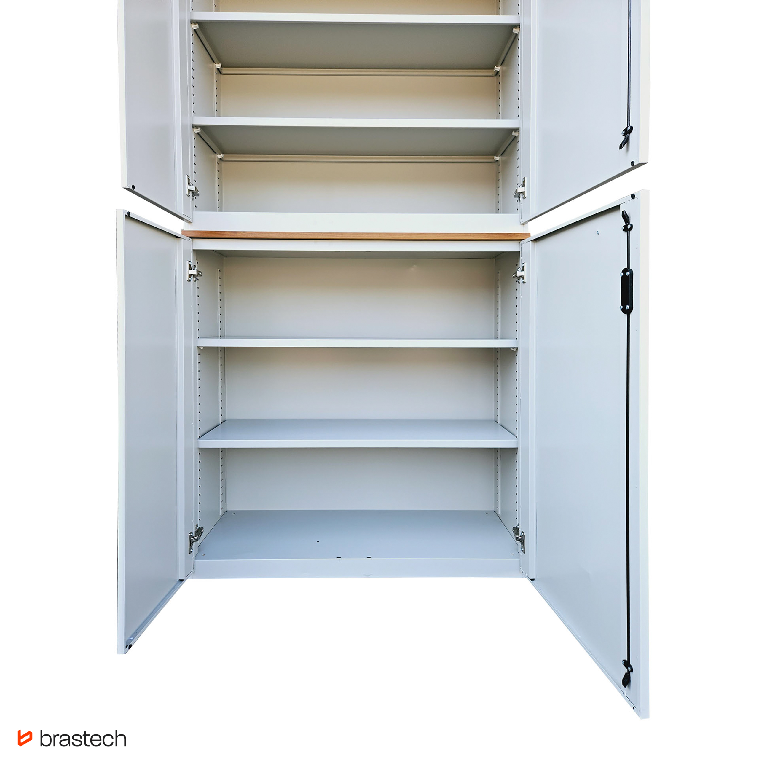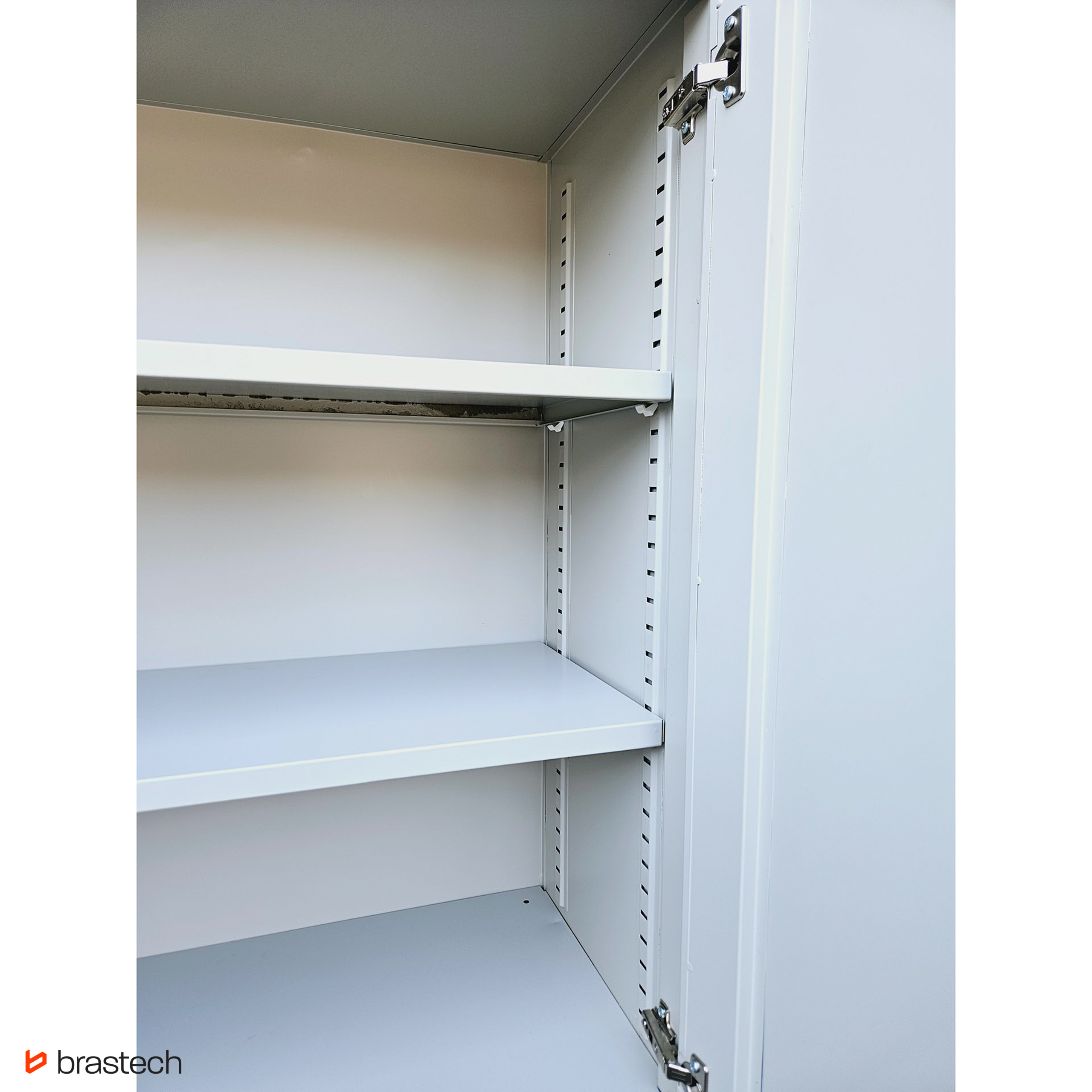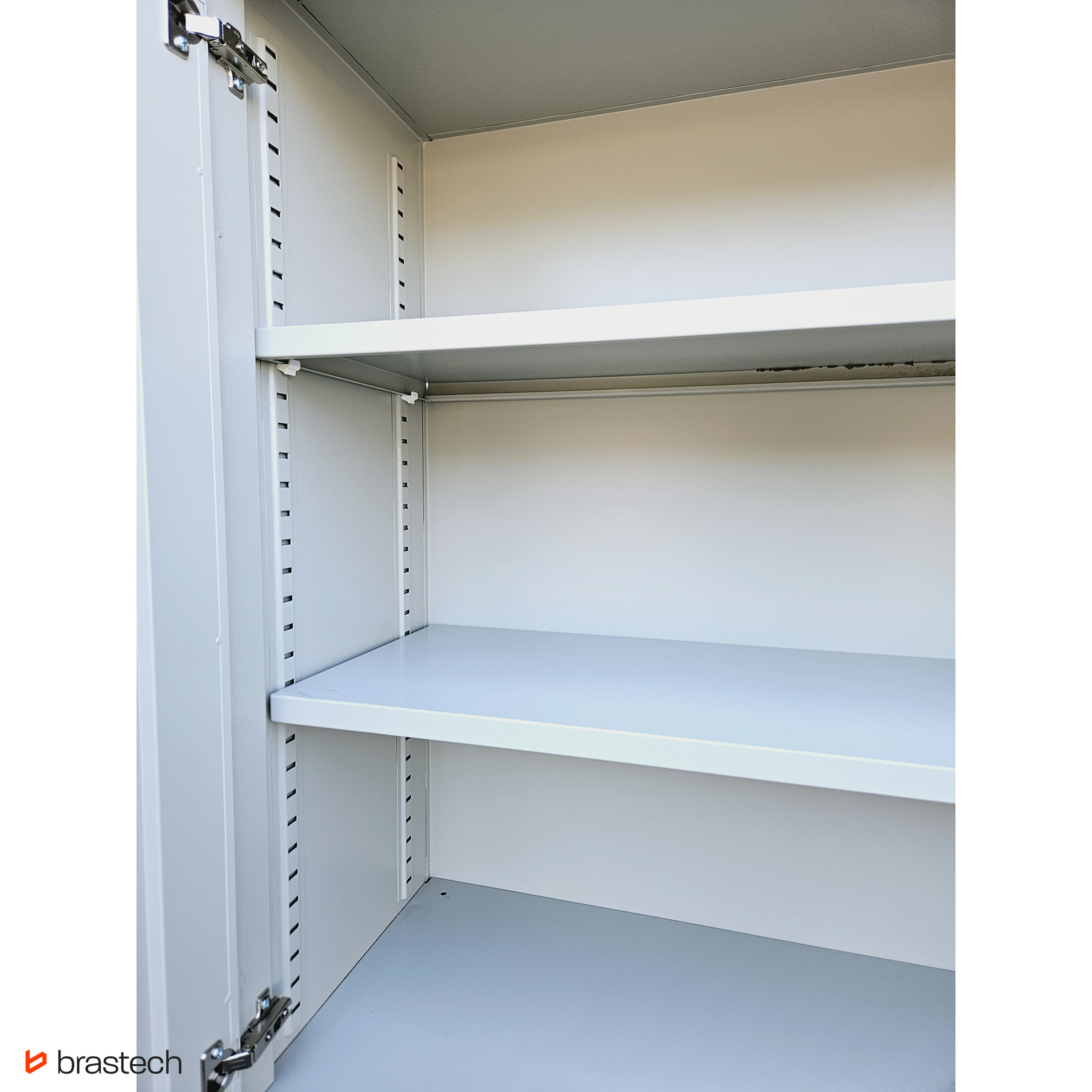 Wytrzymała stalowa konstrukcja – malowana proszkowo, odporna na korozję i zarysowania, gwarantuje długą żywotność oraz łatwe utrzymanie szafy w czystości.