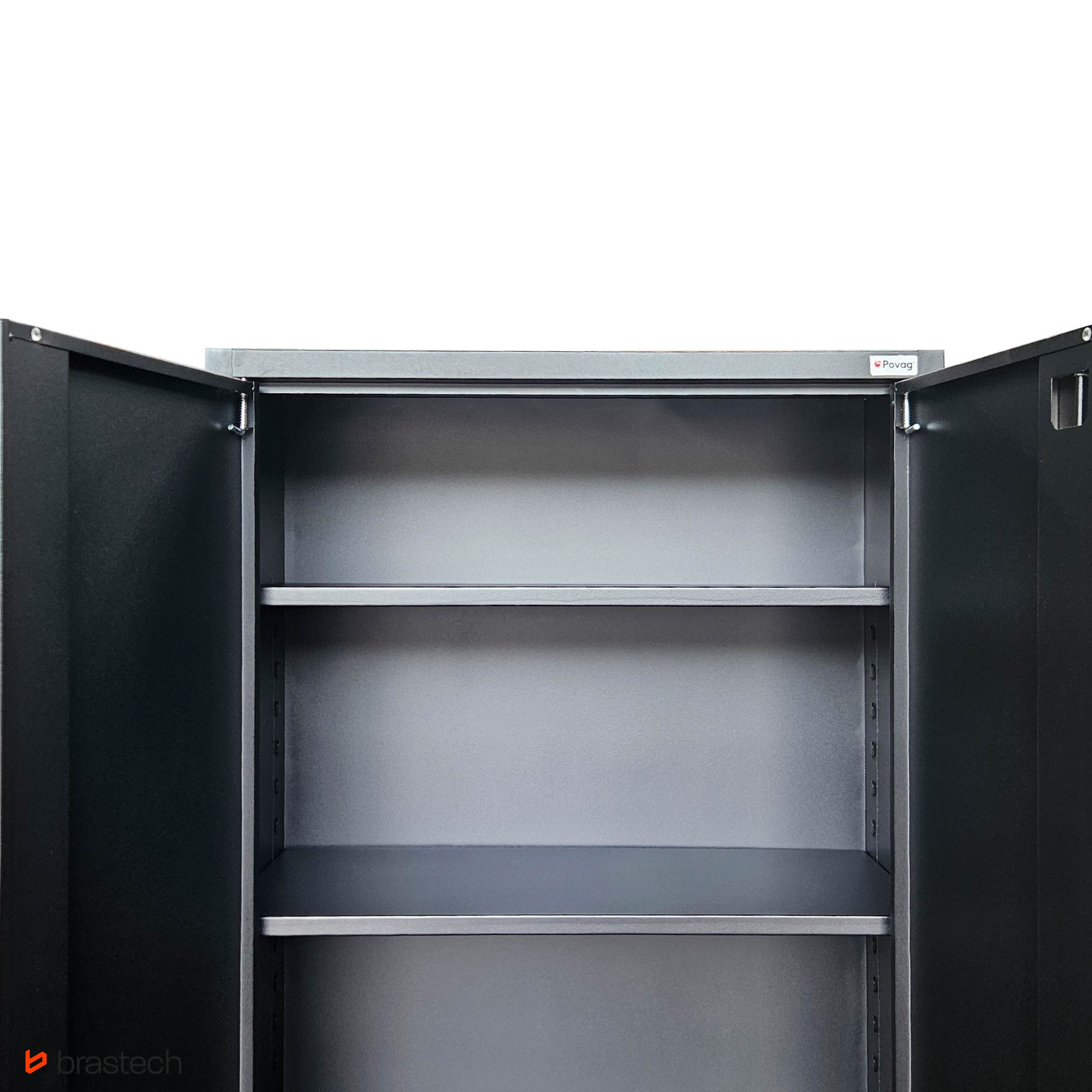 • Dwuskrzydłowe drzwi z uchwytem i zamkiem – klasyczne otwieranie na zawiasach zapewnia pełny dostęp do wnętrza szafy. Drzwi opcjonalnie mogą być wyposażone są w zamek z kluczem, który chroni zawartość przed dostępem osób nieuprawnionych.