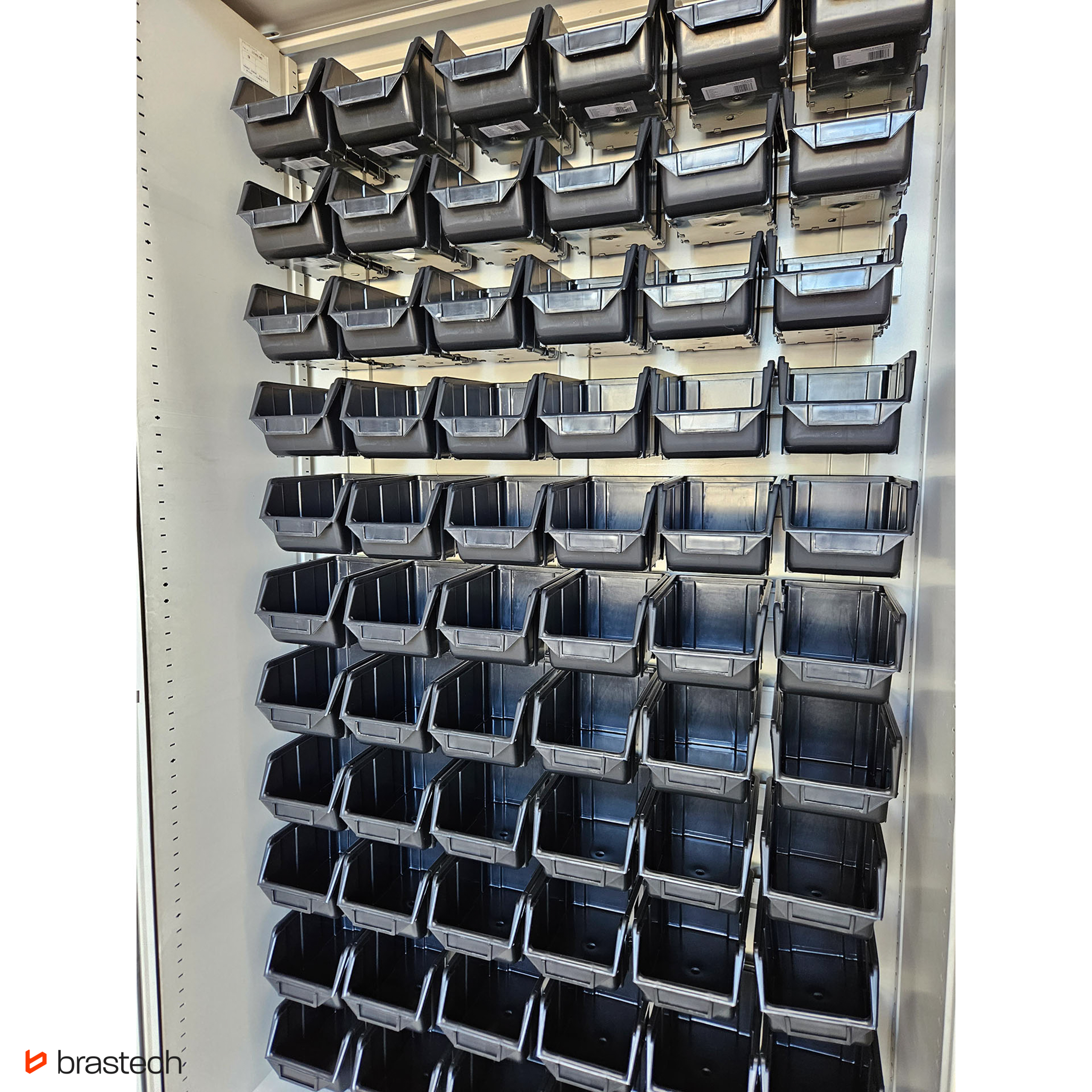 Wnętrze szafy wyposażone jest w funkcjonalne pojemniki, które umożliwiają łatwą segregację i szybki dostęp do przechowywanych elementów. Przejrzysty układ pojemników pozwala na efektywną organizację pracy oraz oszczędność czasu.