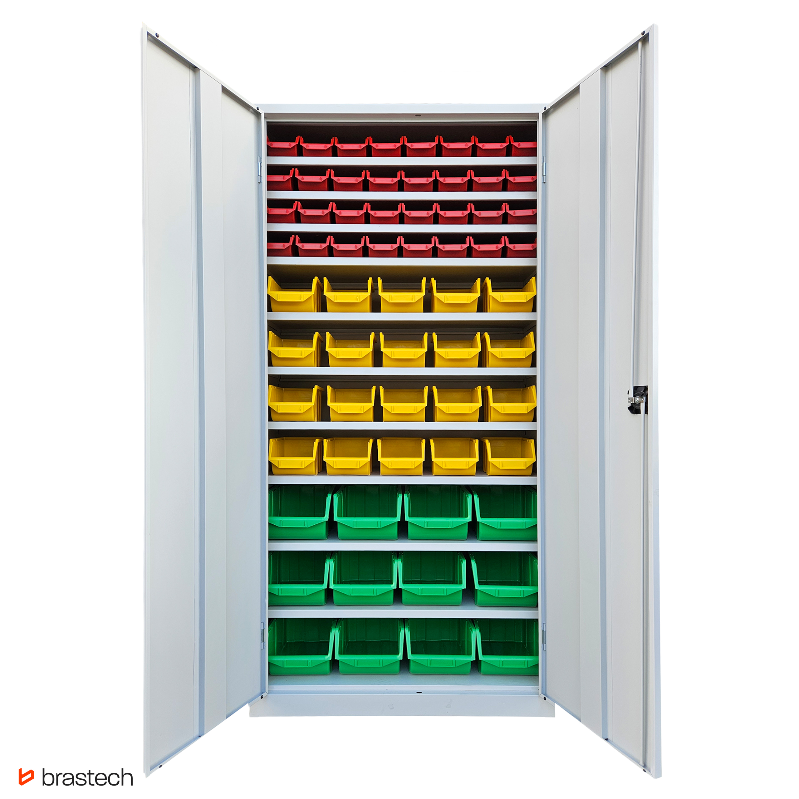 Szafa metalowa z pojemnikami to funkcjonalne i wytrzymałe rozwiązanie do przechowywania oraz segregacji drobnych elementów, części technicznych i akcesoriów. Dzięki solidnej konstrukcji stalowej oraz systemowi pojemników umożliwia utrzymanie porządku nawet w intensywnie użytkowanych przestrzeniach roboczych.