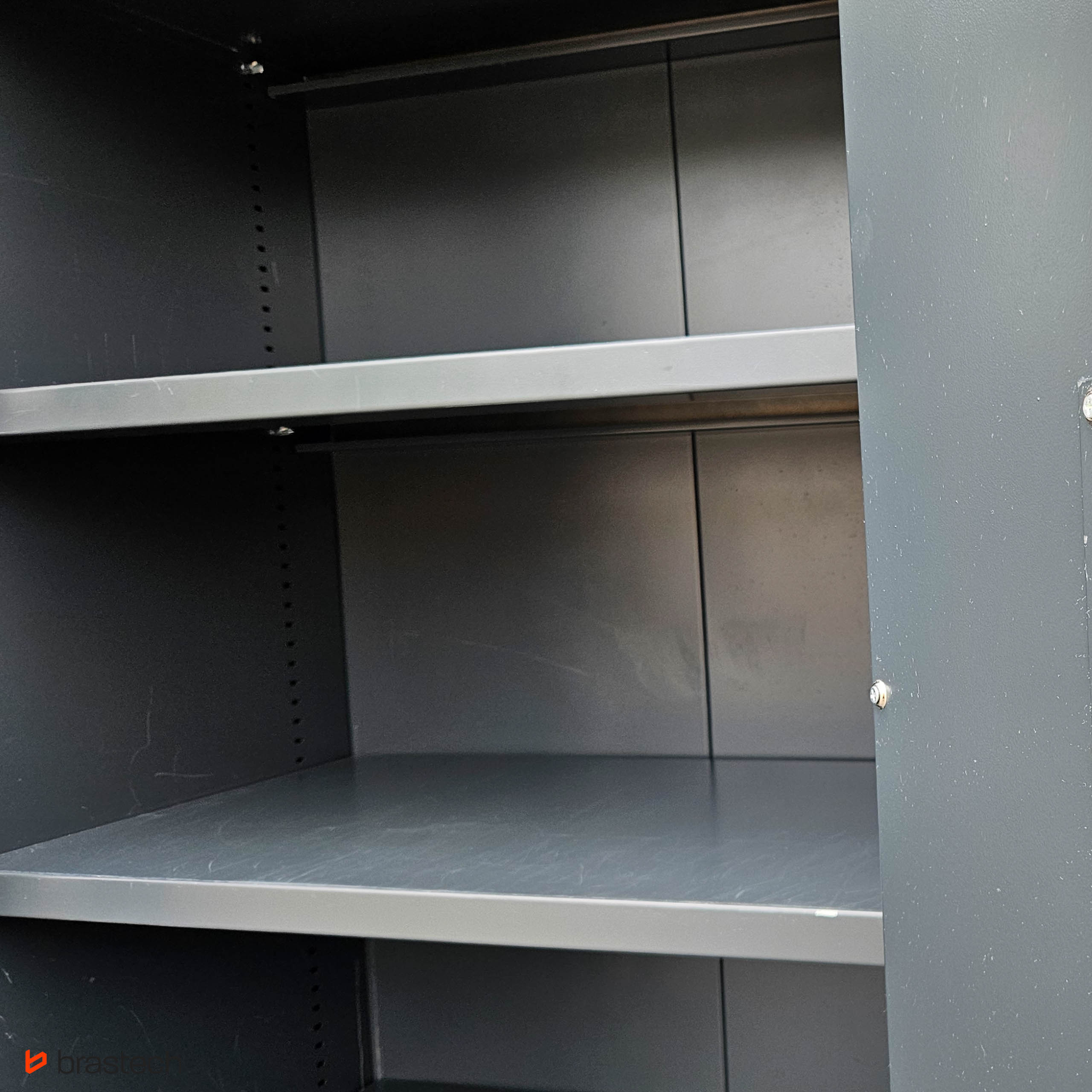 Jednocześnie prosta, elegancka forma sprawia, że szafa estetycznie wpisuje się w przestrzeń biurową, nie zaburzając jej charakteru.