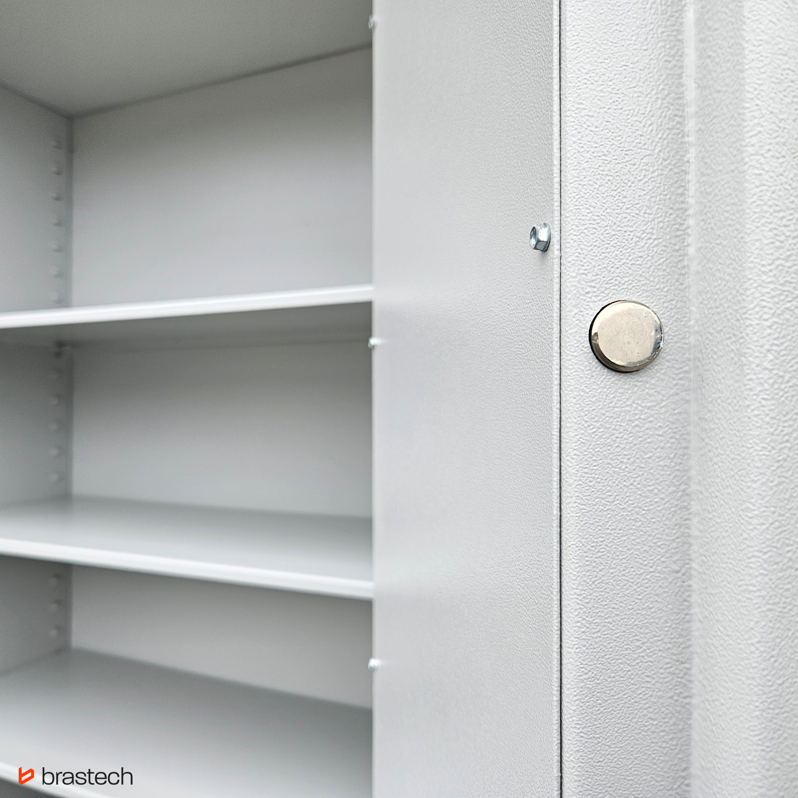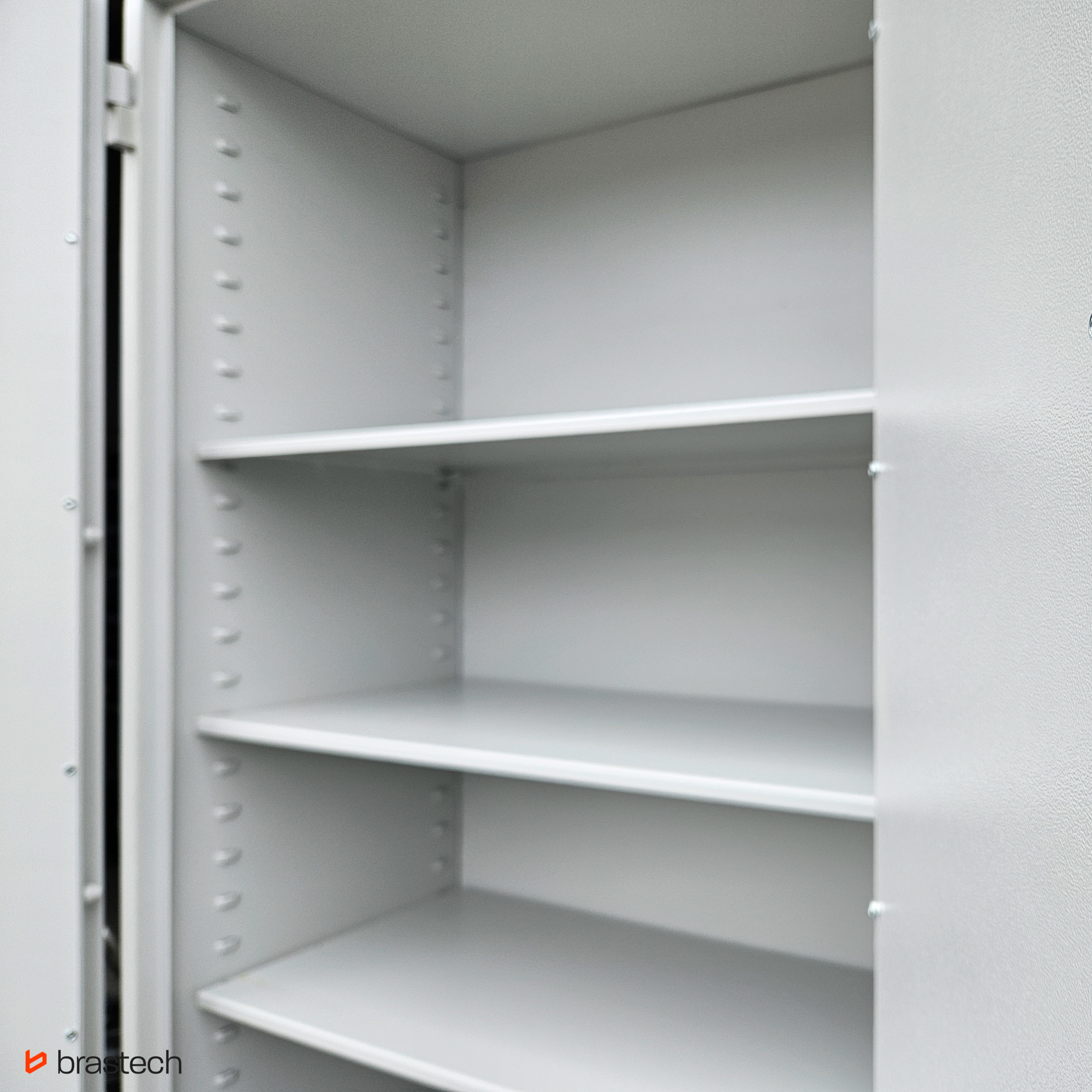 Solidna konstrukcja stalowa oraz zaawansowany system ryglowania skutecznie zabezpieczają zawartość przed włamaniem, nieautoryzowanym dostępem oraz uszkodzeniami mechanicznymi. To niezawodne wsparcie w ochronie mienia i poufnych danych.