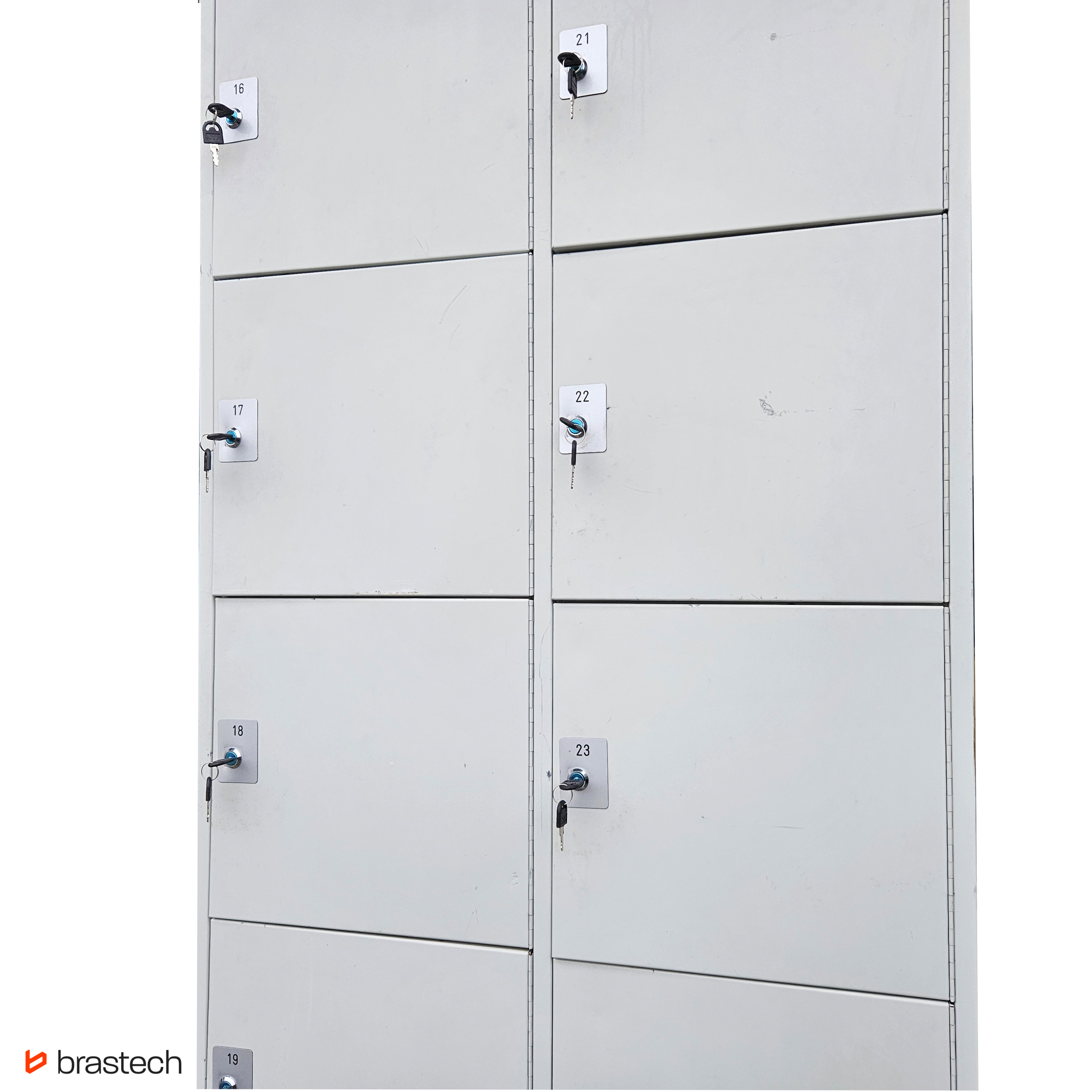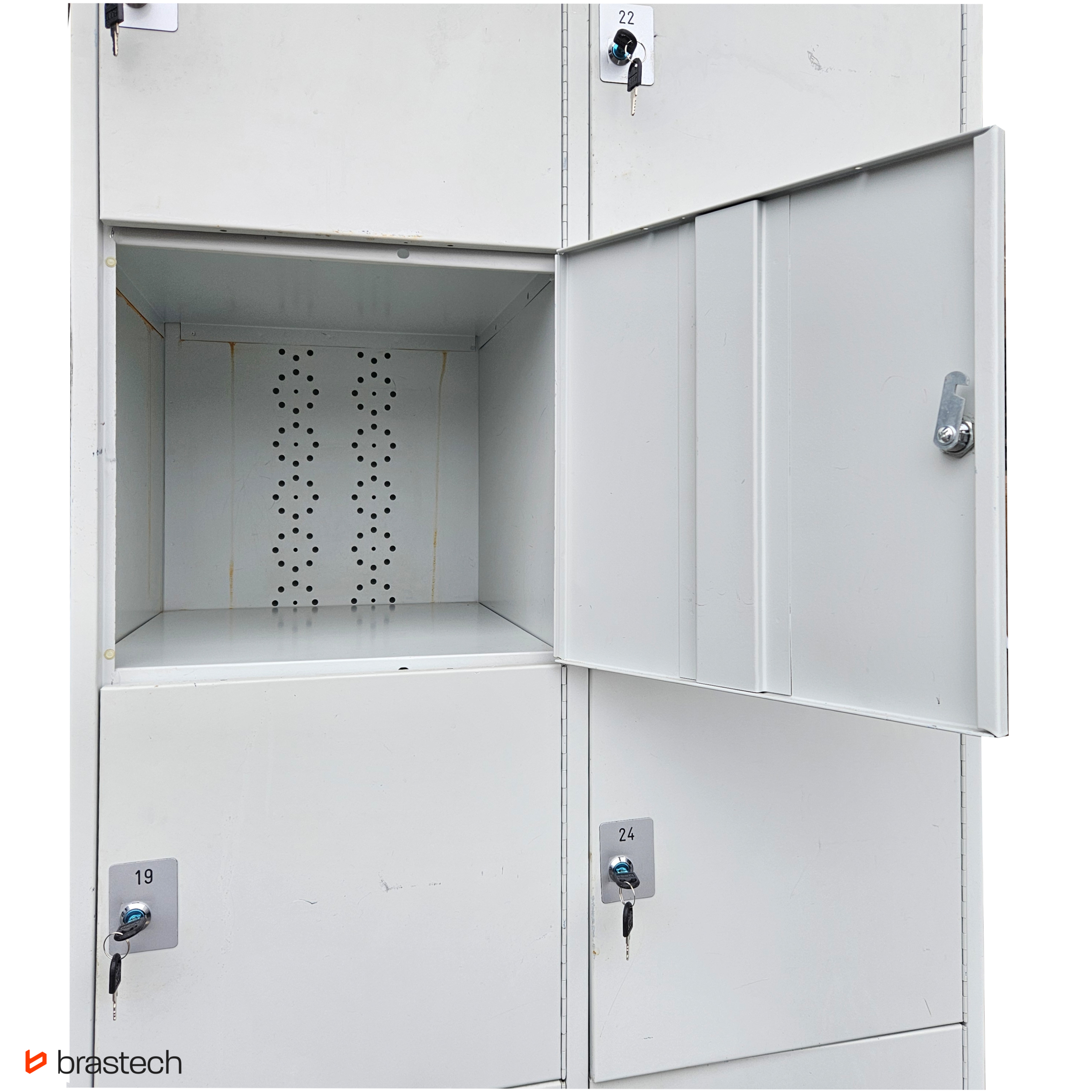 Każda szafa posiada zamek i system zamknięcia. Nie każda szafa posiada klucz. W specyfikacji jest informacja o dostępności klucza lub jego braku. Dla szaf zamykanych dostępny zawsze co najmniej jeden klucz.